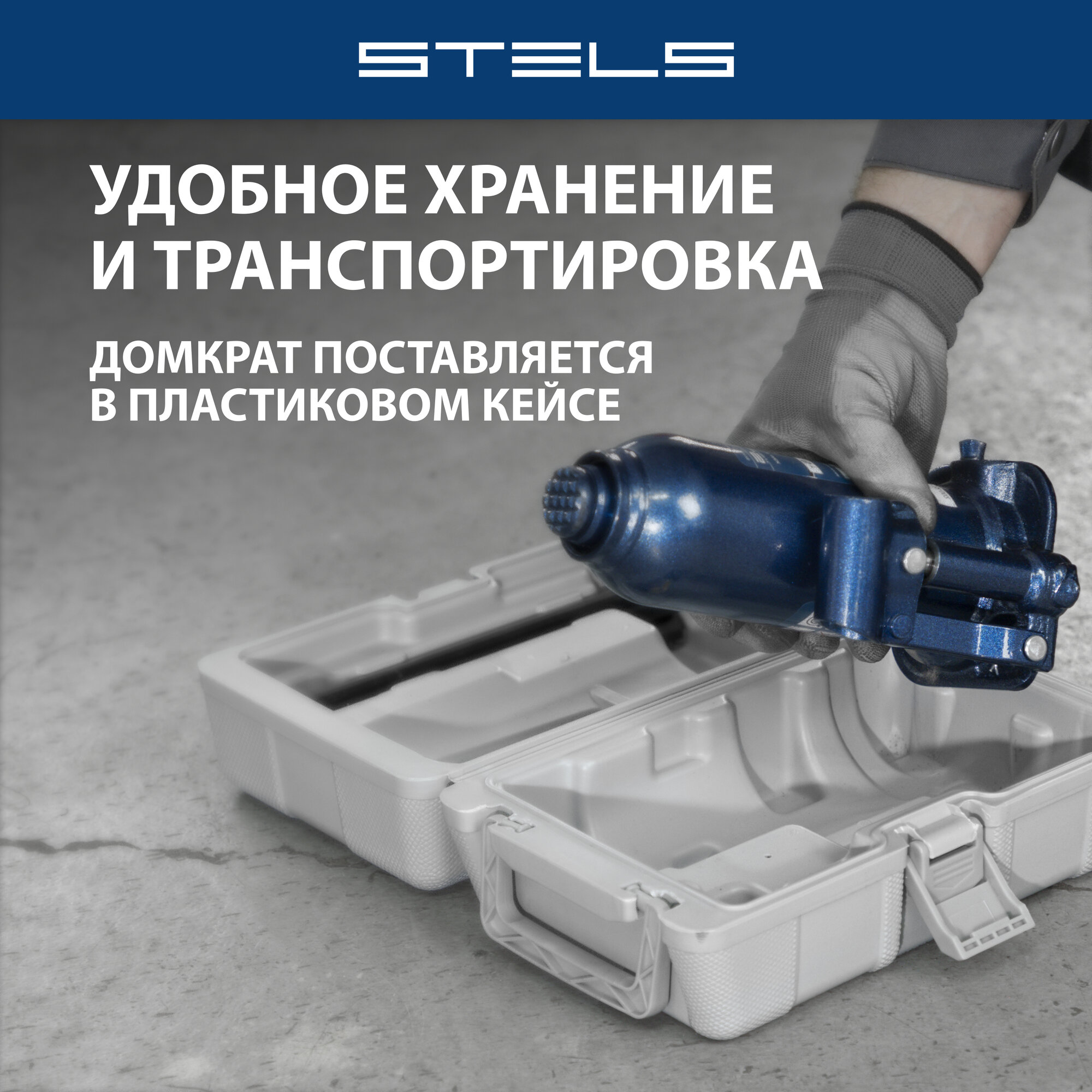 Домкрат гидравлический бутылочный STELS 6 т в пластиковом кейсе