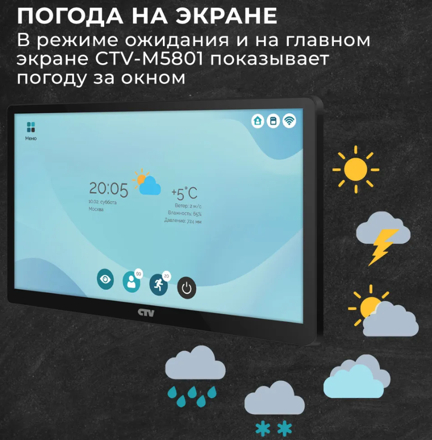 Монитор видеодомофона для дома CTV-M5801 с Wi-Fi, белый, 8 дюймов интересное: