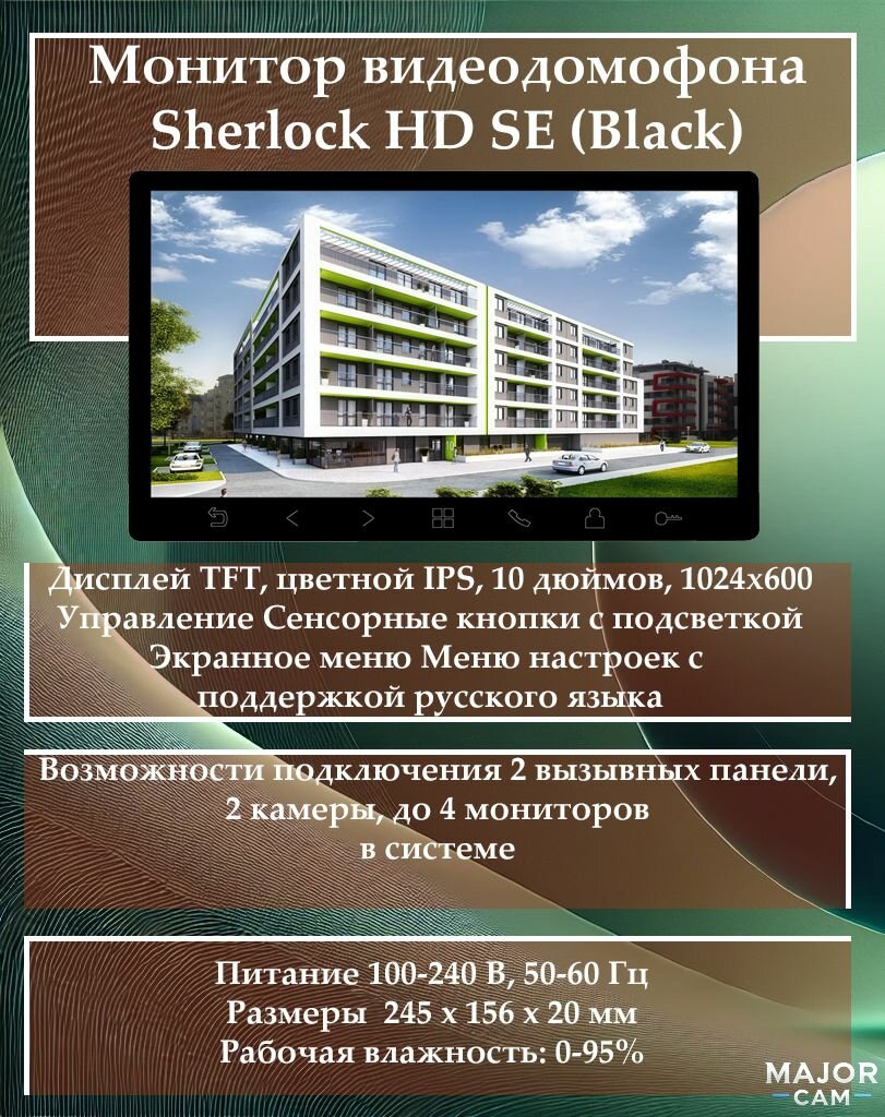 Монитор видеодомофона Sherlock HD SE (Black) интересное: