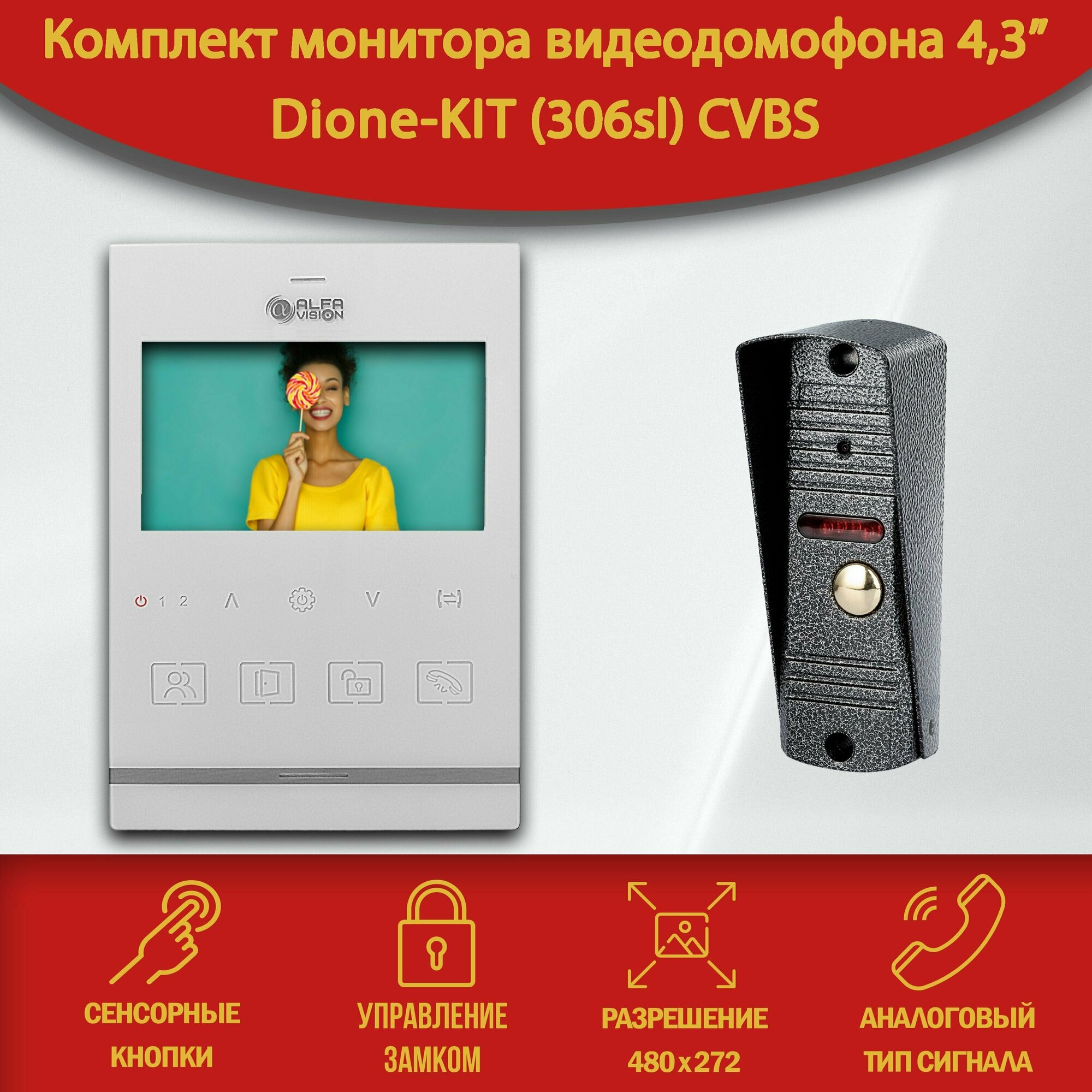 Купить Комплект видеодомофона Dione KIT+вызывная панель(306sl). Экран 4.3". Совместим с подъездным домофоном через модуль сопряжения.
