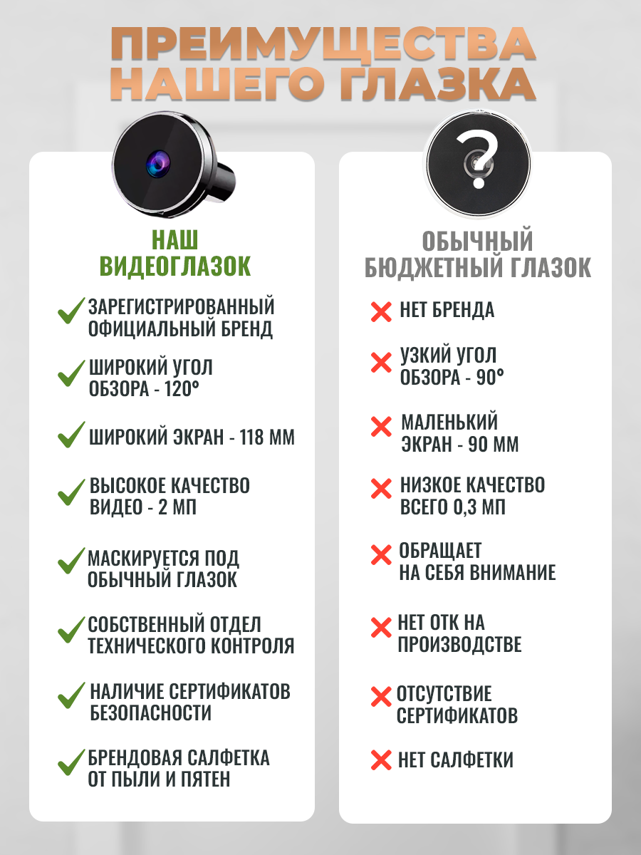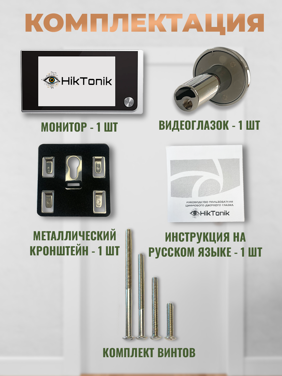 Видеоглазок HikTonik DS33 для входной двери с монитором, угол обзора 120°, камера 2 МП, с батарейками интересное: