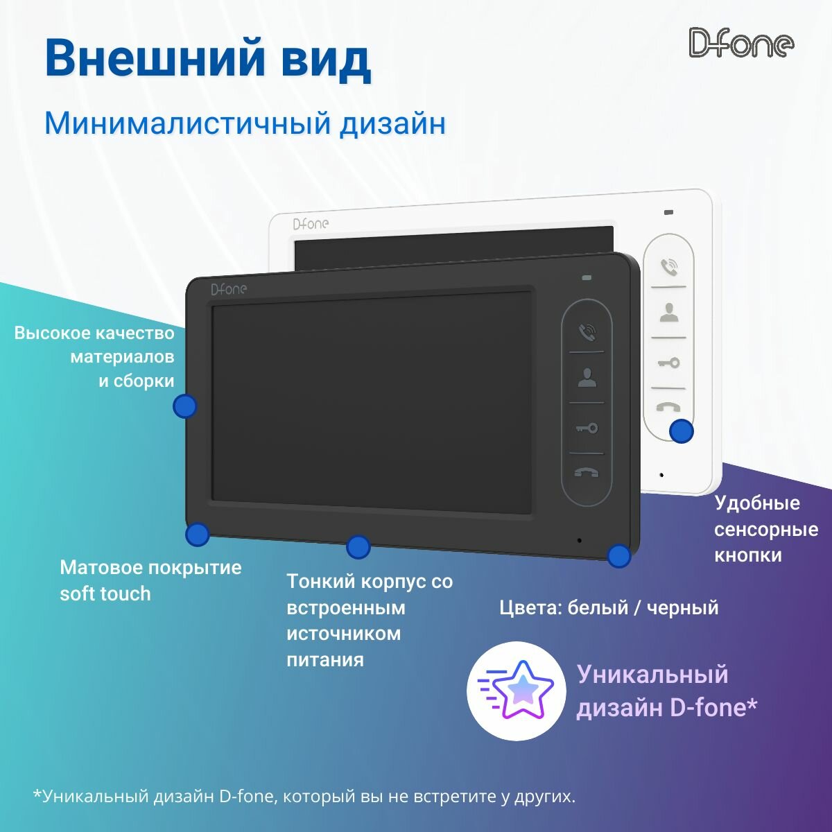 Видеодомофон для квартиры D-fone Hero 7 (Белый), TFT дисплей 7" 1024х600, детекция движения, встроенная память, cовместим с подъездным домофоном через модуль сопряжения