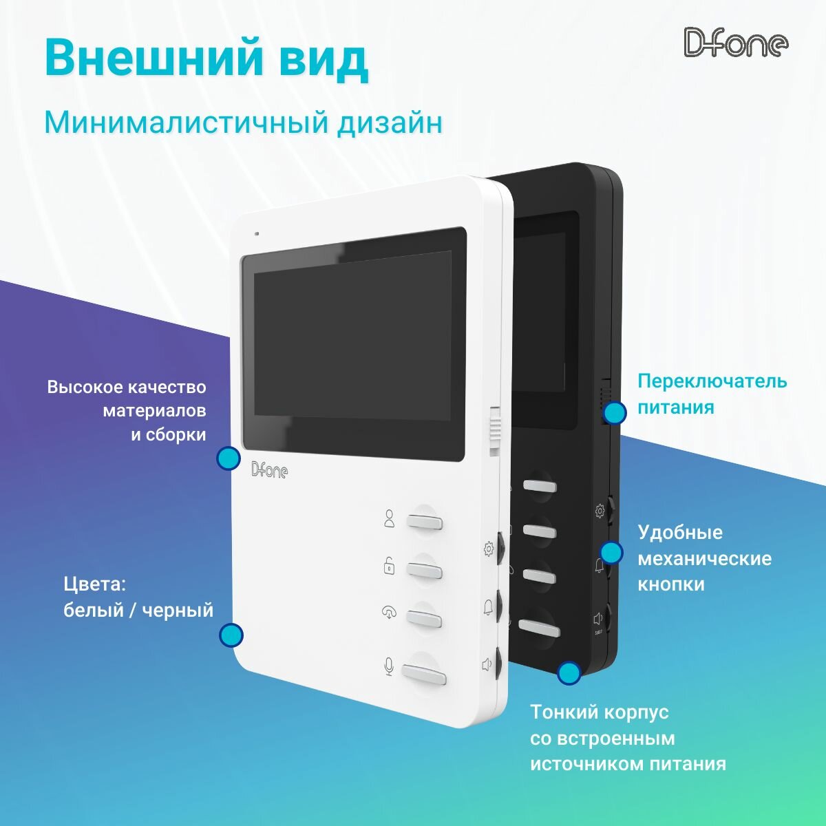 Видеодомофон для квартиры D-fone Mini 4 Plus (Белый), IPS дисплей 4" 480x272, cовместим с подъездным домофоном через блок сопряжения