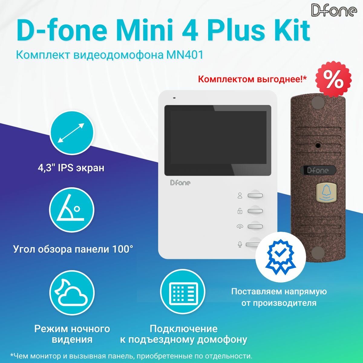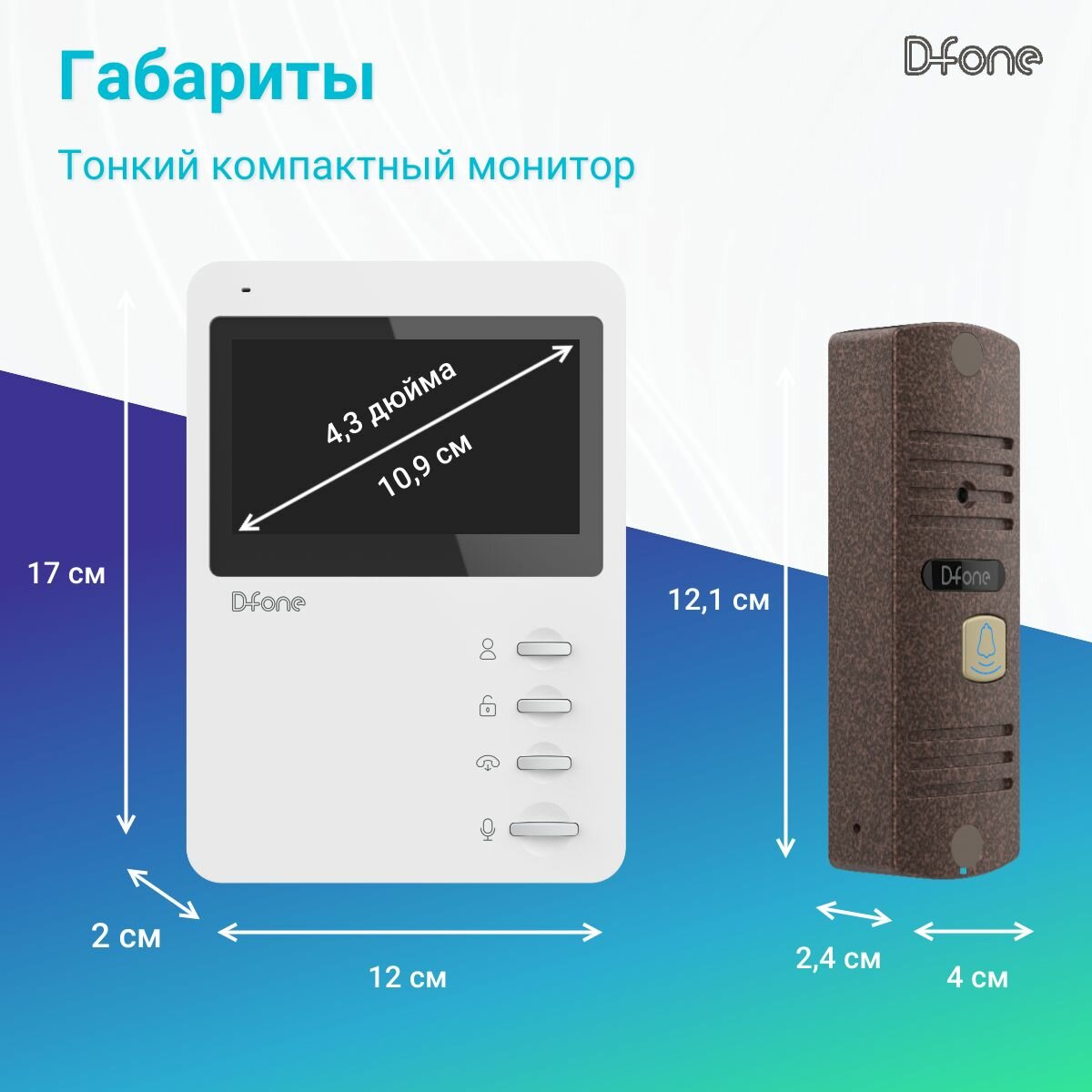 Комплект видеодомофона D-fone Mini 4 Plus Kit (Черный - Бронза), IPS дисплей 4" 480x272, угол обзора 100 градусов,