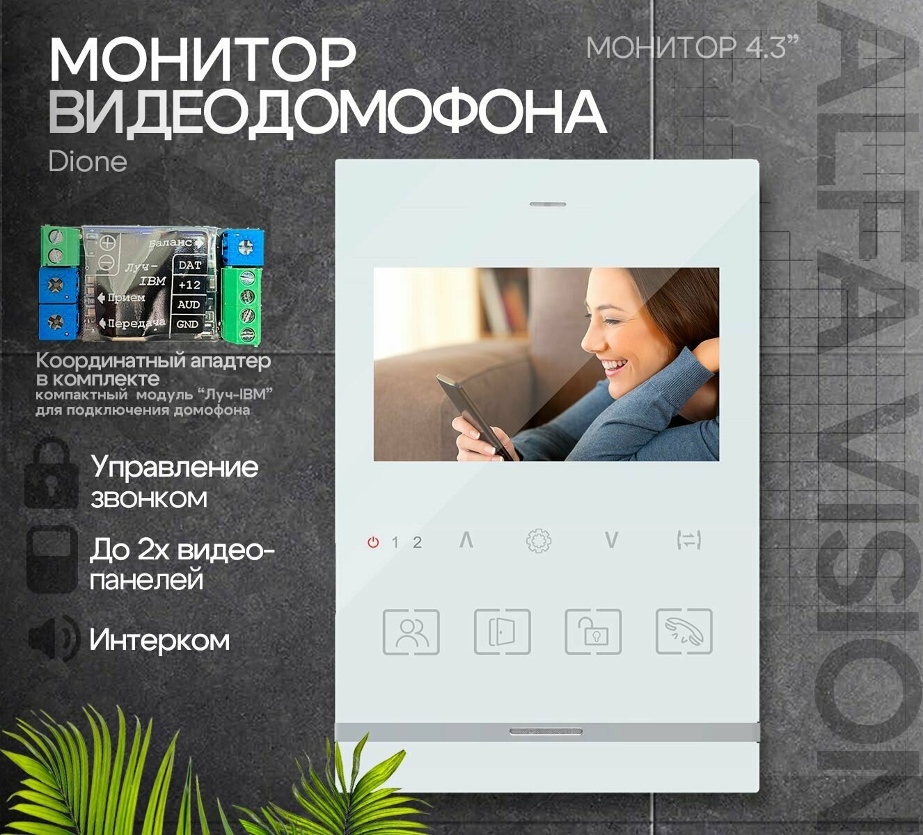 Купить Комплект Видеодомофон Dione, 4.3 дюйма, CVBS+модуль сопряжения "Луч-IBM" для работы с подъездными домофонами Vizit, Cyfral, Eltis