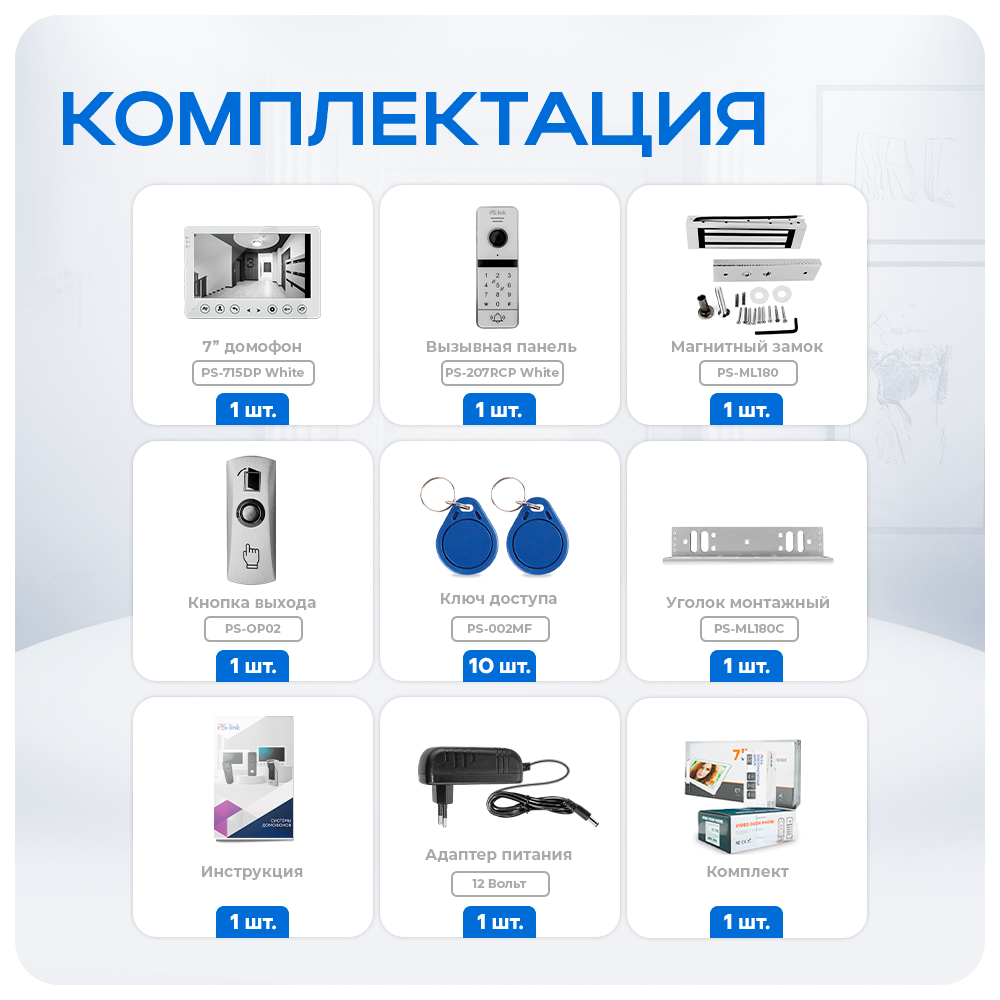 Комплект видеодомофона Ps-Link KIT-7527WW-18 интересное: