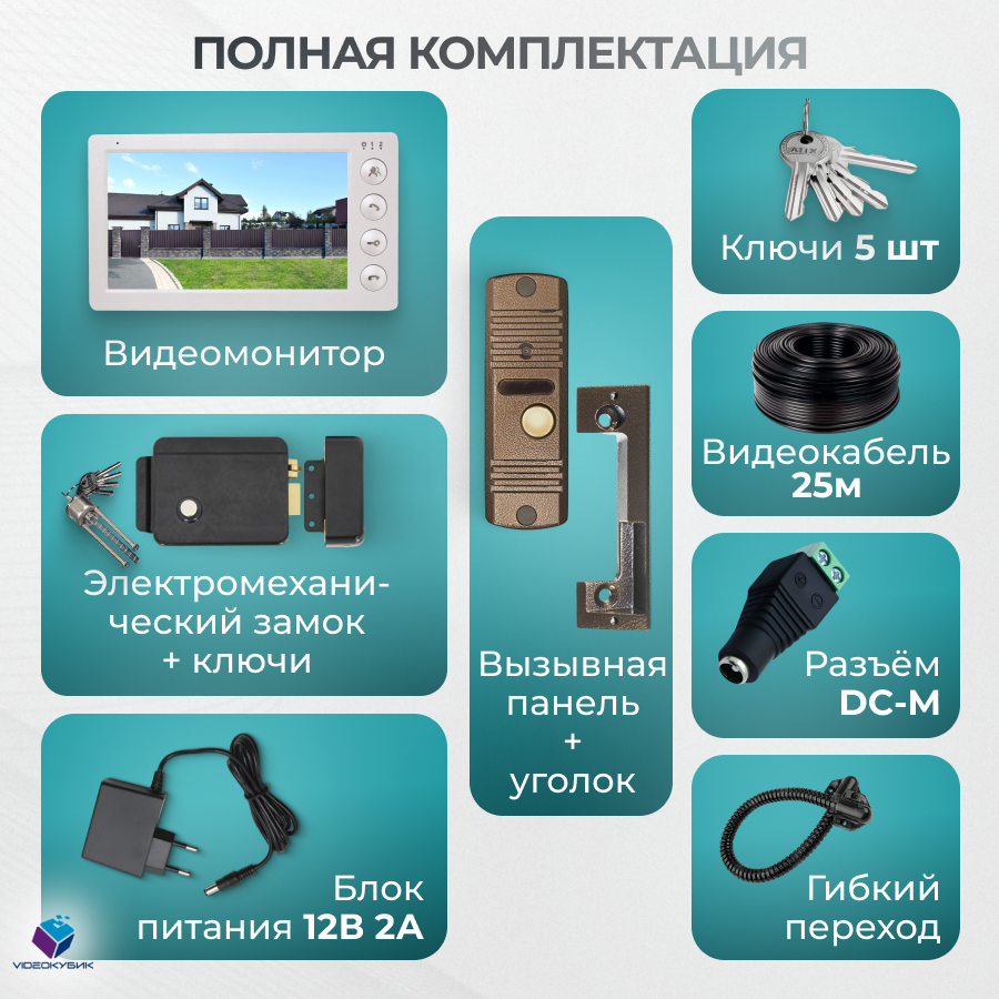 Купить Видеодомофон для частного дома, комплект с электромеханическим замком на калитку, ключами, кабелем, вызывной панелью