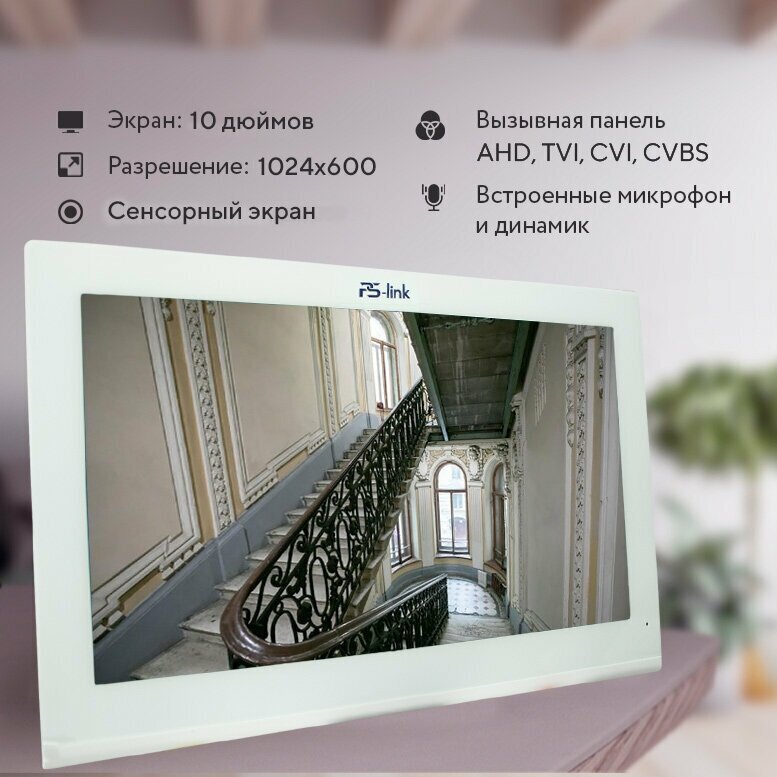 Умный WiFi видеодомофон проводной PS-link 130TDP сенсорный экран 10", с записью на карту памяти интересное: