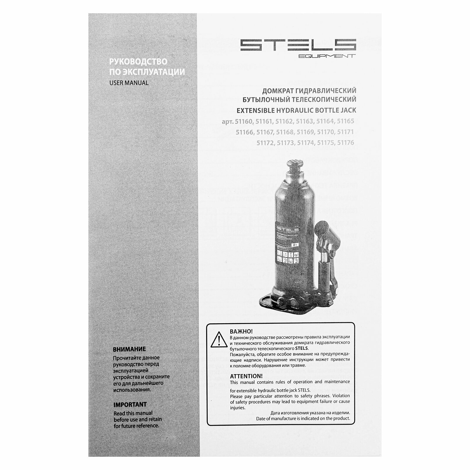 Домкрат гидравлический бутылочный STELS EQUIPMENT STELS 16 т, h подъема 227–457 мм, 51168