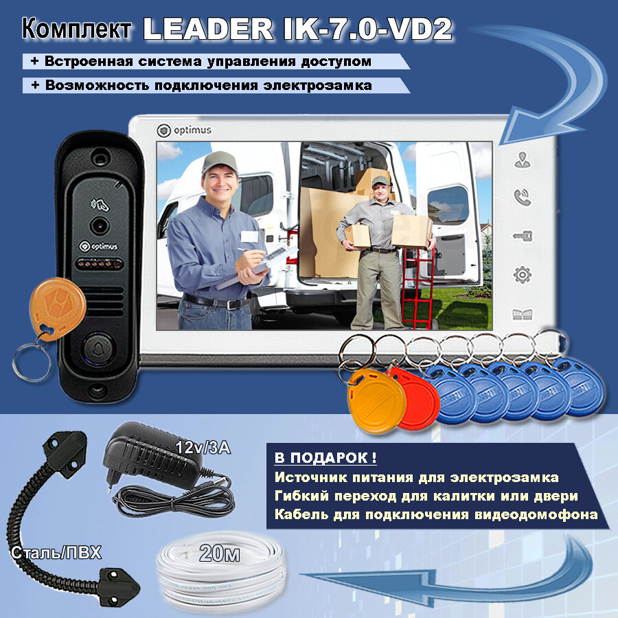 Видеодомофон Optimus Leader IK-7.0-VD2, комплект интересное: