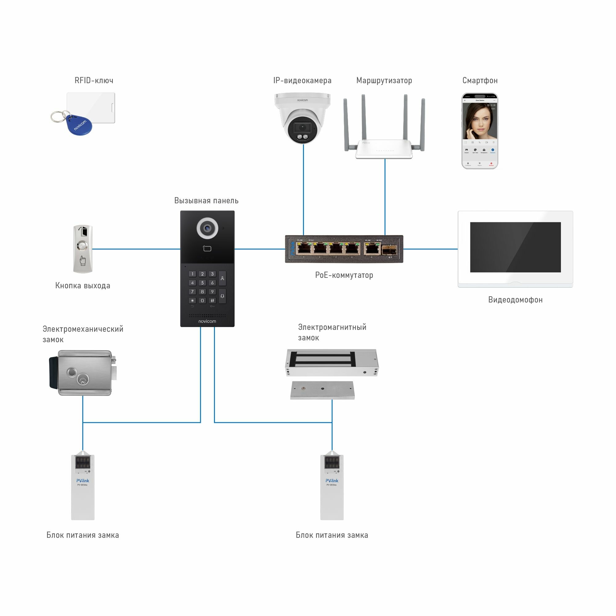 IP-видеодомофон Novicam IMPULSE 7 IP WIFI WHITE. Touch screen 7". 10 панелей, 8 камер, 9 домофонов. Wi-Fi или RJ-45 интересное: