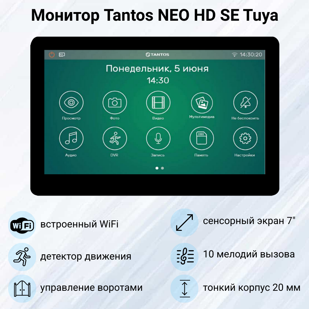 Комплект видеодомофона Tantos NEO HD SE Tuya WiFi (черный) с панелью iPanel 2 HD (металлик) интересное: