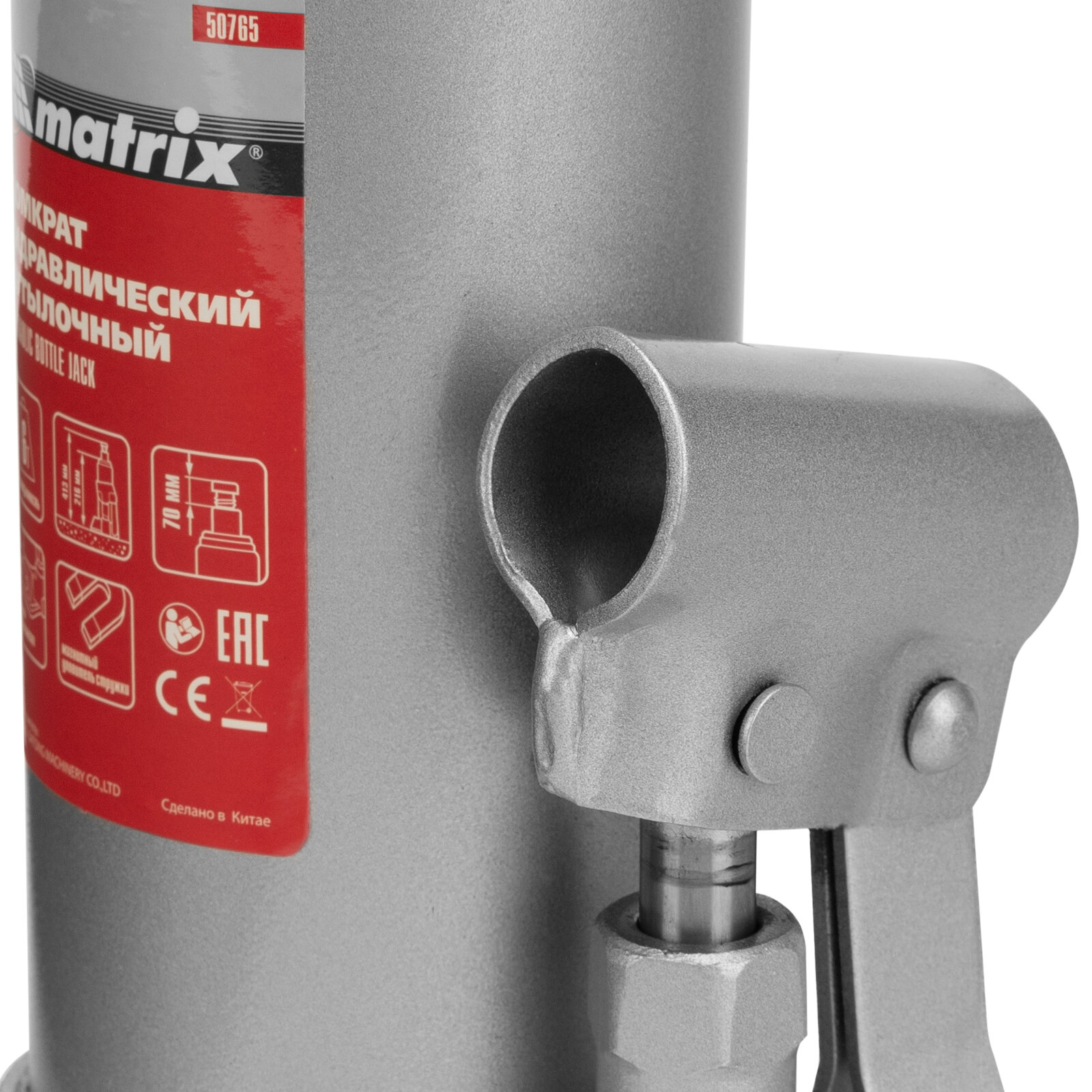 Домкрат гидравлический Matrix 50765, бутылочный, 6 т, высота подъема 216-413 мм .