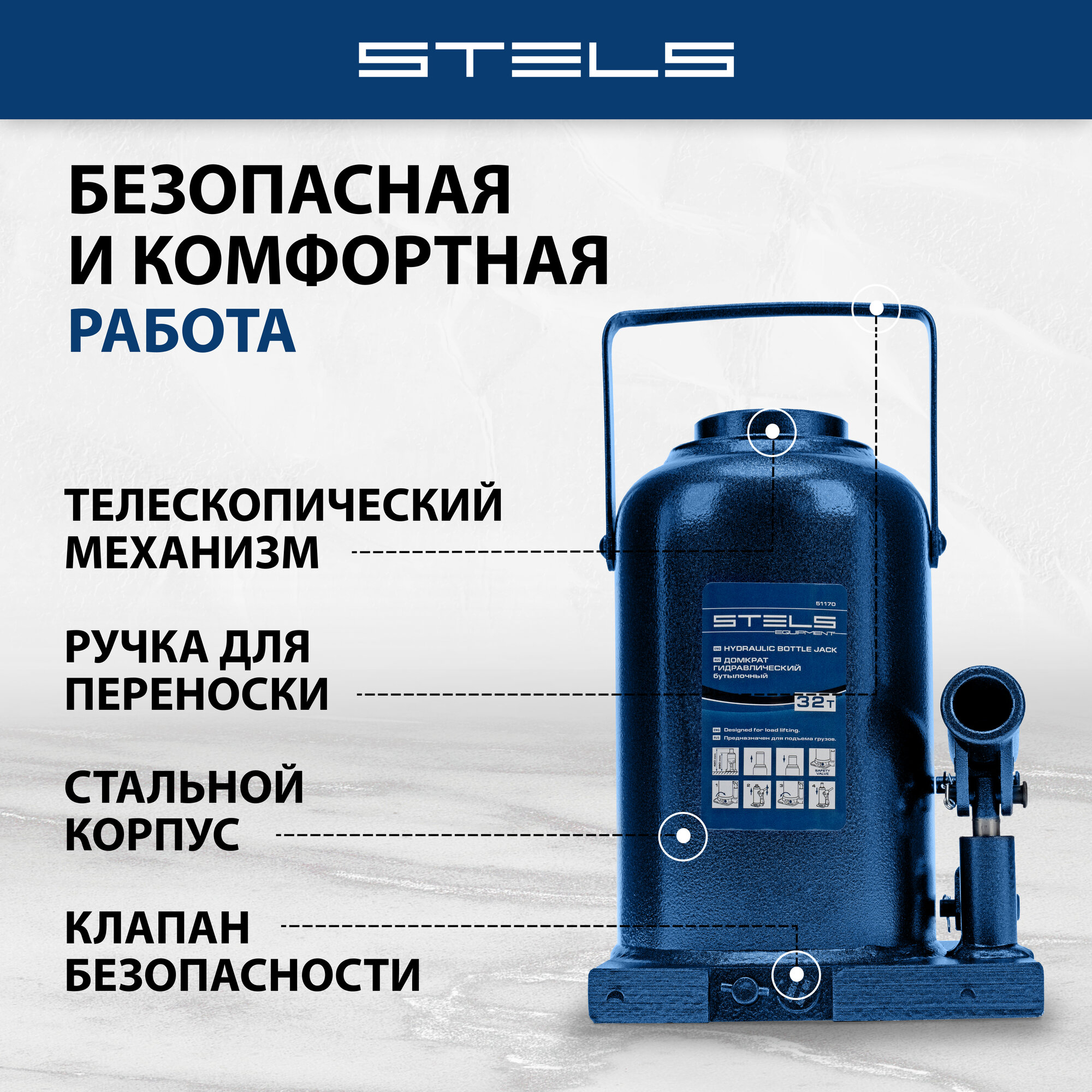 STELS 51170 Домкрат гидравический бутыочный, 32 т, h подъема 260-420 мм Stels 51170 STELS 51170