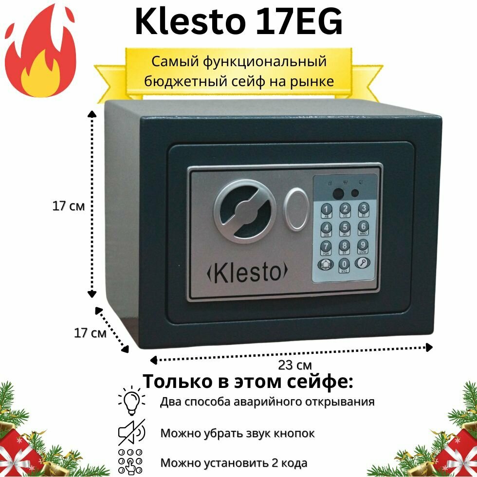 Домашний кодовый сейф для денег и документов Klesto 17EG (Ш23хВ17хГ17 см) интересное: