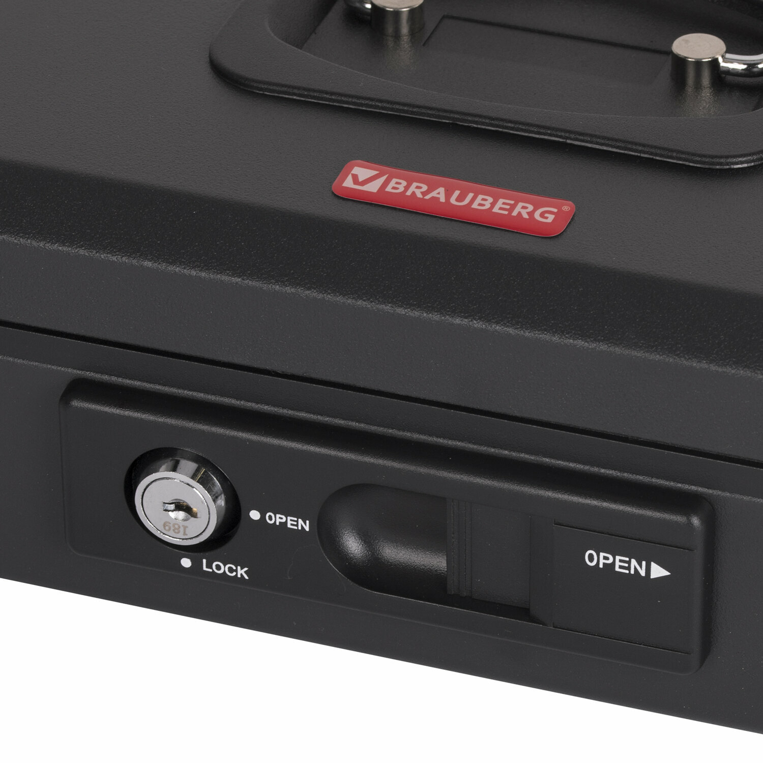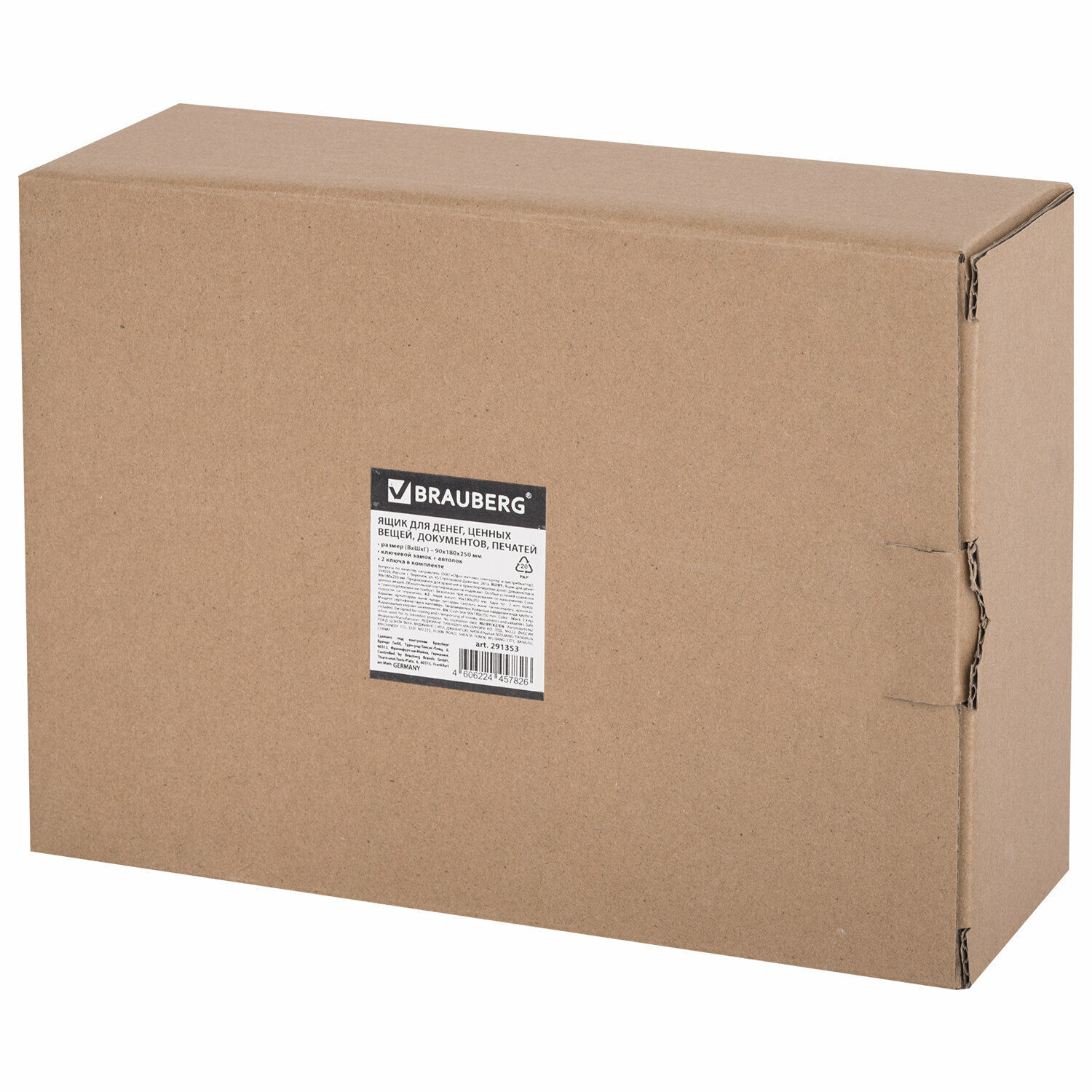 Купить Ящик для денег, коробка для ценностей, мини сейф для хранения документов, шкатулка с замком 90х180х250 мм, ключ и автолок, Brauberg, 291353