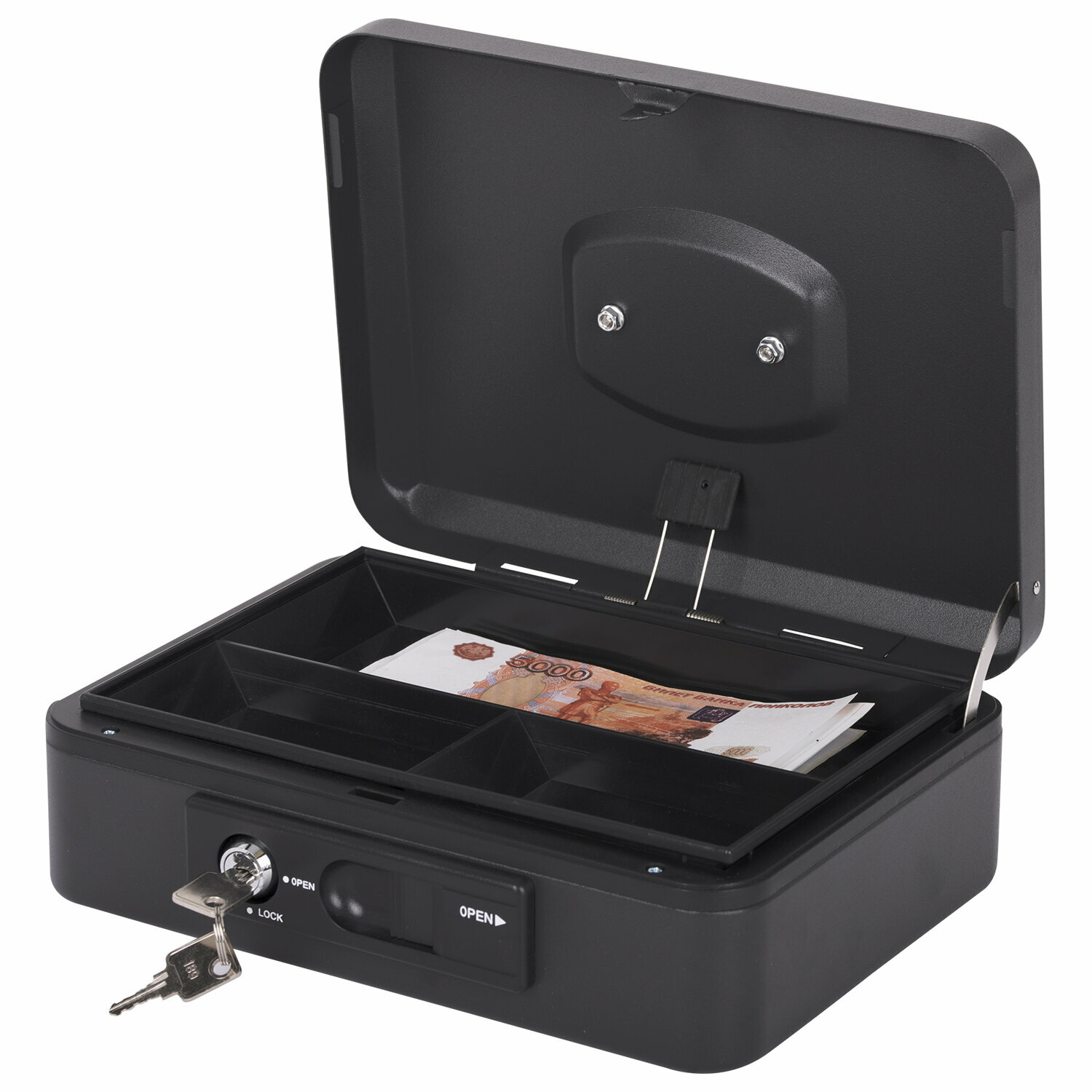 Ящик для денег, коробка для ценностей, мини сейф для хранения документов, шкатулка с замком 90х180х250 мм, ключ и автолок, Brauberg, 291353 интересное: