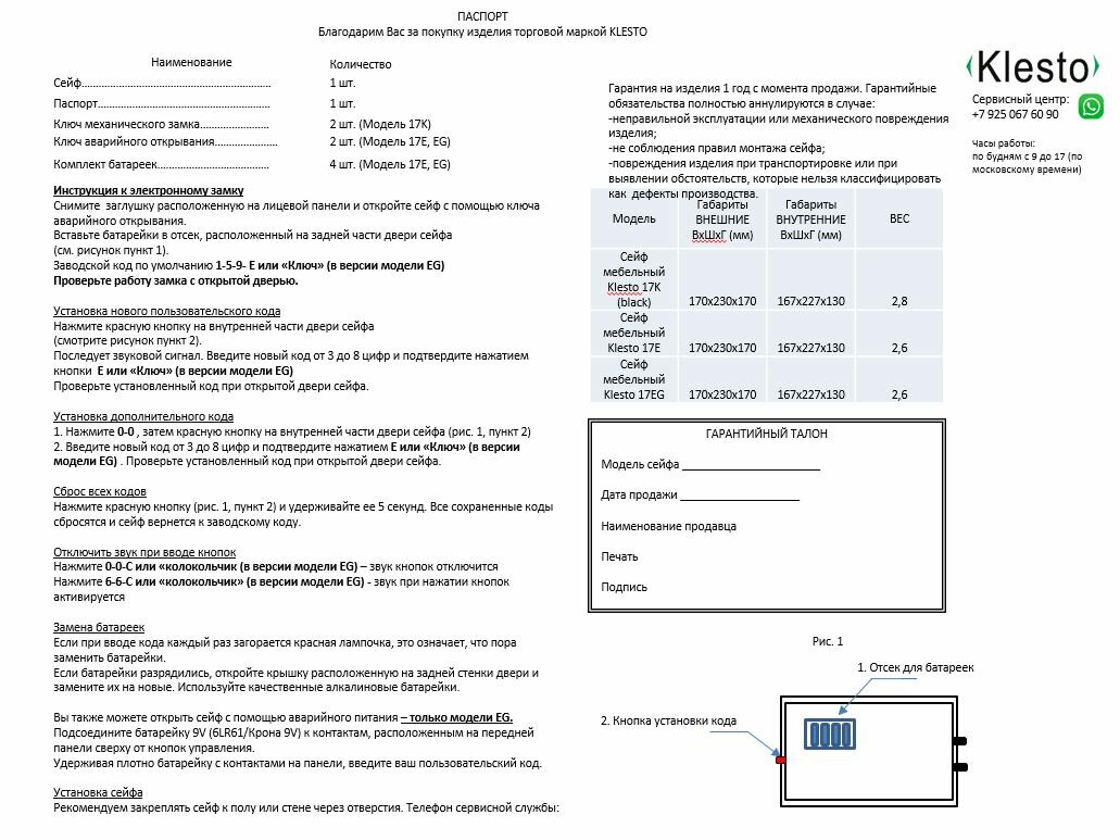 Сейф электронный Klesto 17EW; Ш23хВ17хГ17 см; электронный кодовый замок интересное: