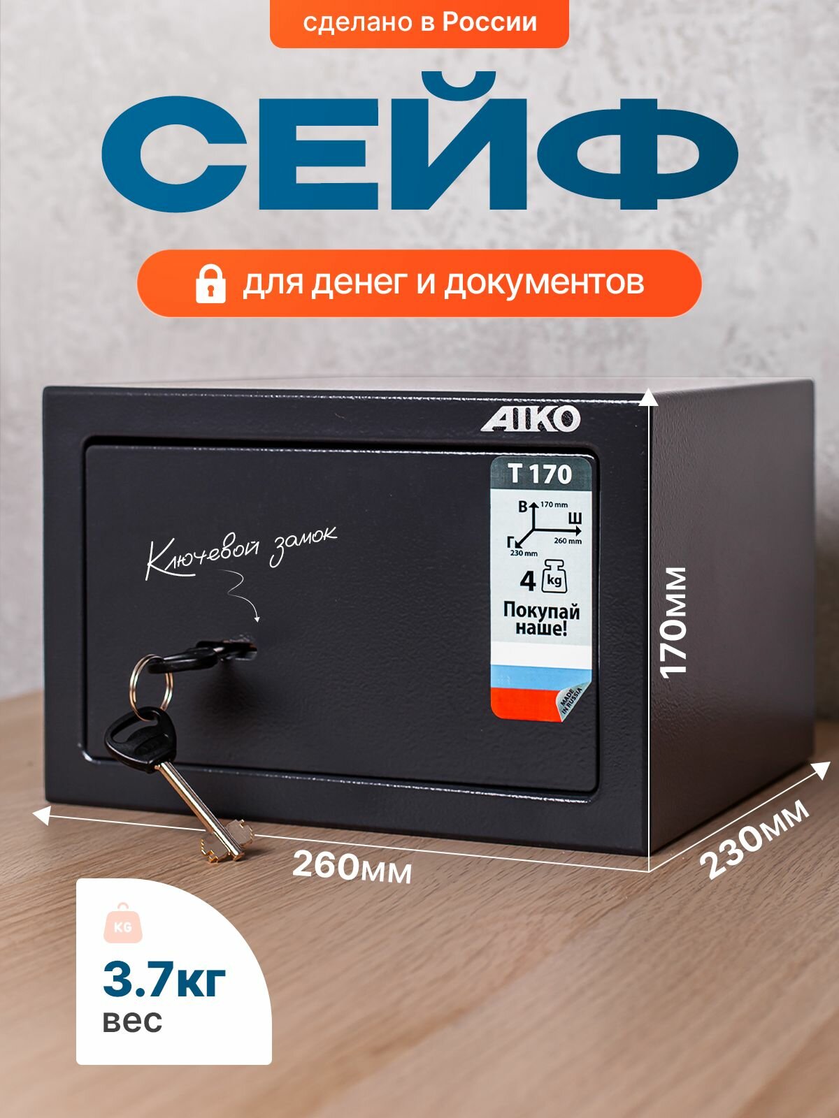 Сейф AIKO, оружейный, для денег и документов, ключевой замок, черный интересное: