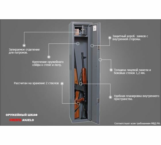 СохранитьСейф оружейный OMERTA ANJELO на 2 ствола (В/Ш/Г, мм 1300х265х225) интересное: