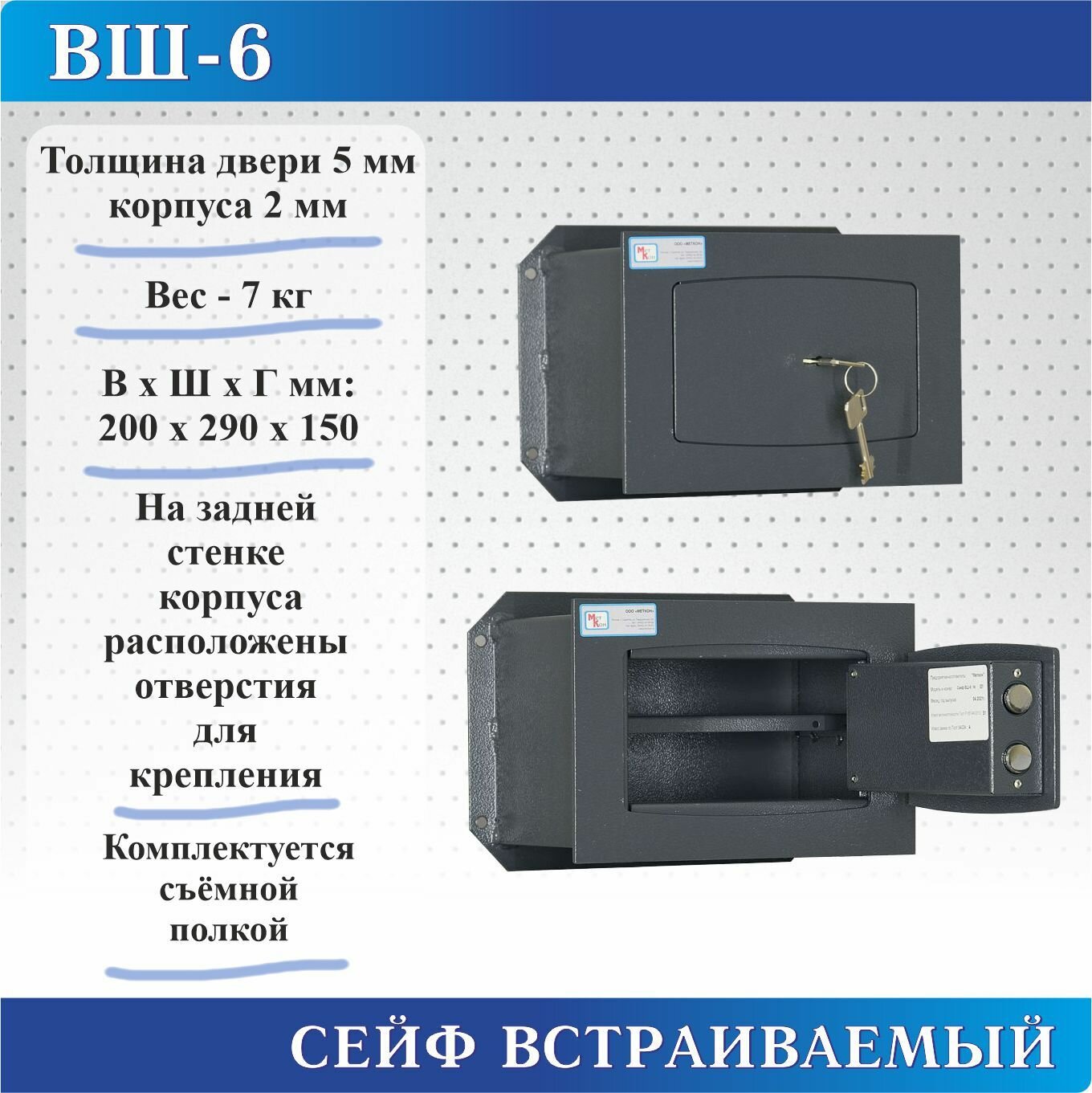 Сейф встраиваемый Меткон ВШ-6, В. Ш. Г. 200х290х150 интересное: