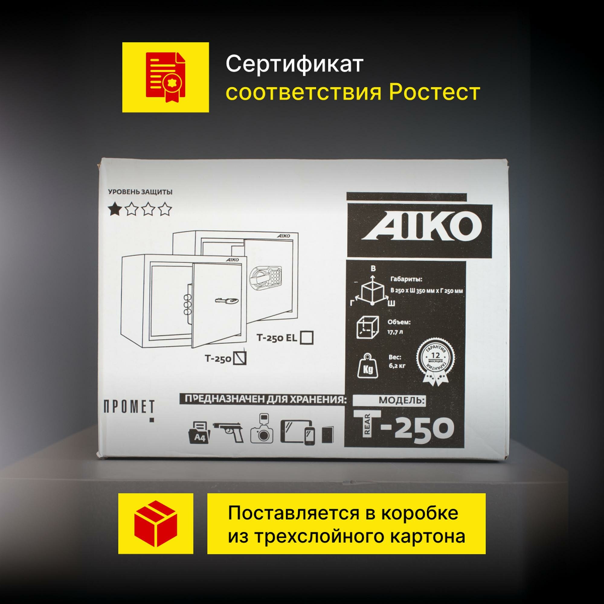 Сейф для денег и документов ключевой AIKO Т - 250, размер: 350х250х250мм интересное: