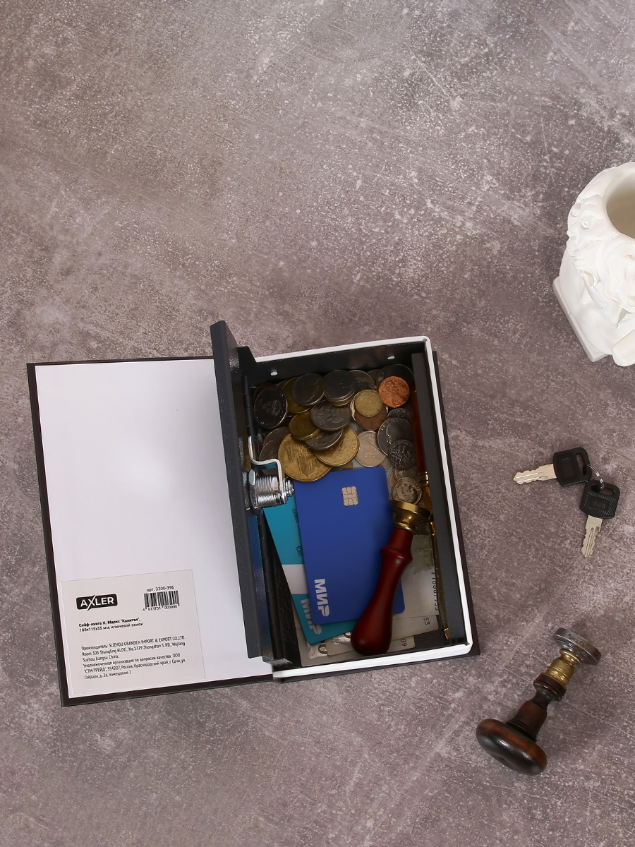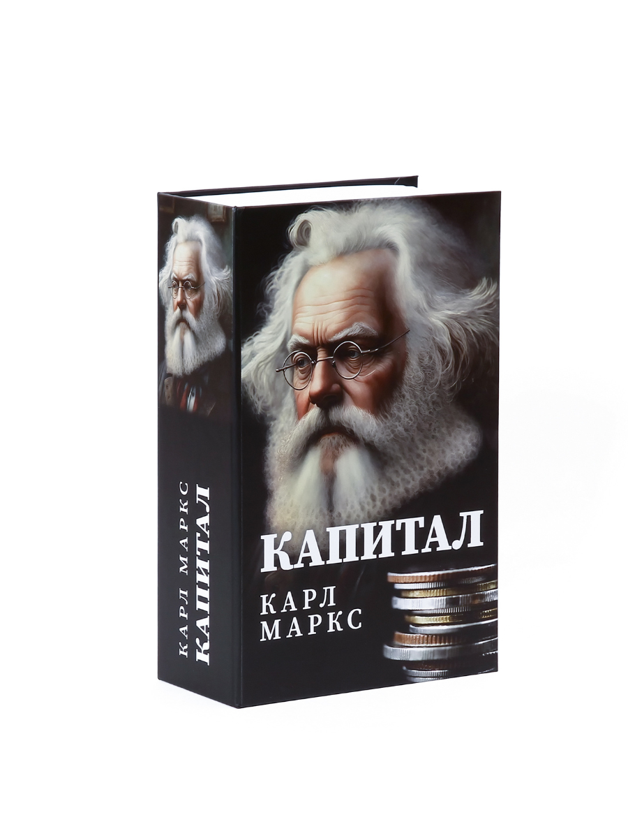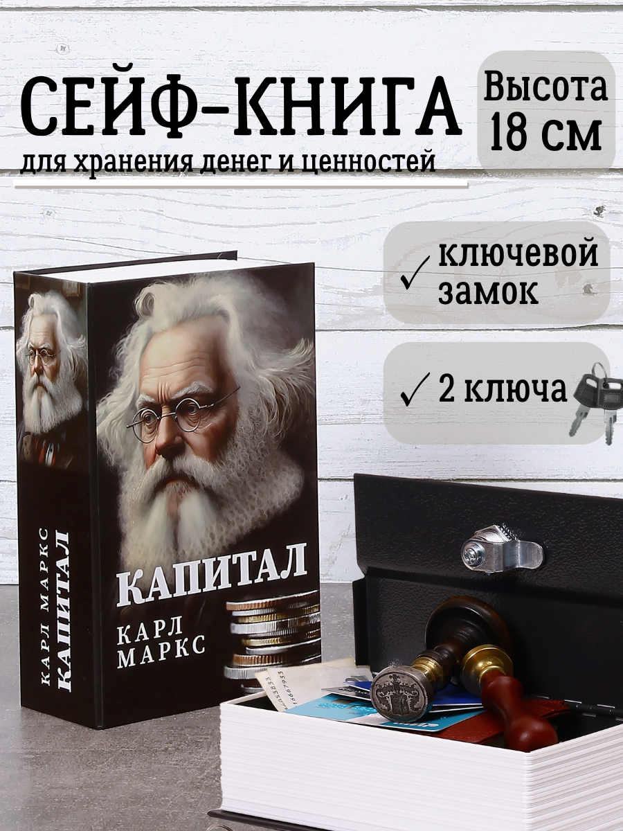Книга сейф для денег AXLER шкатулка с ключом, копилка в виде книжки, К. Маркс "Капитал" интересное: