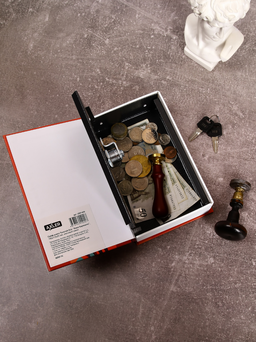 Книга сейф для денег AXLER шкатулка с ключом, копилка в виде книжки, К. Маркс "Капитал"