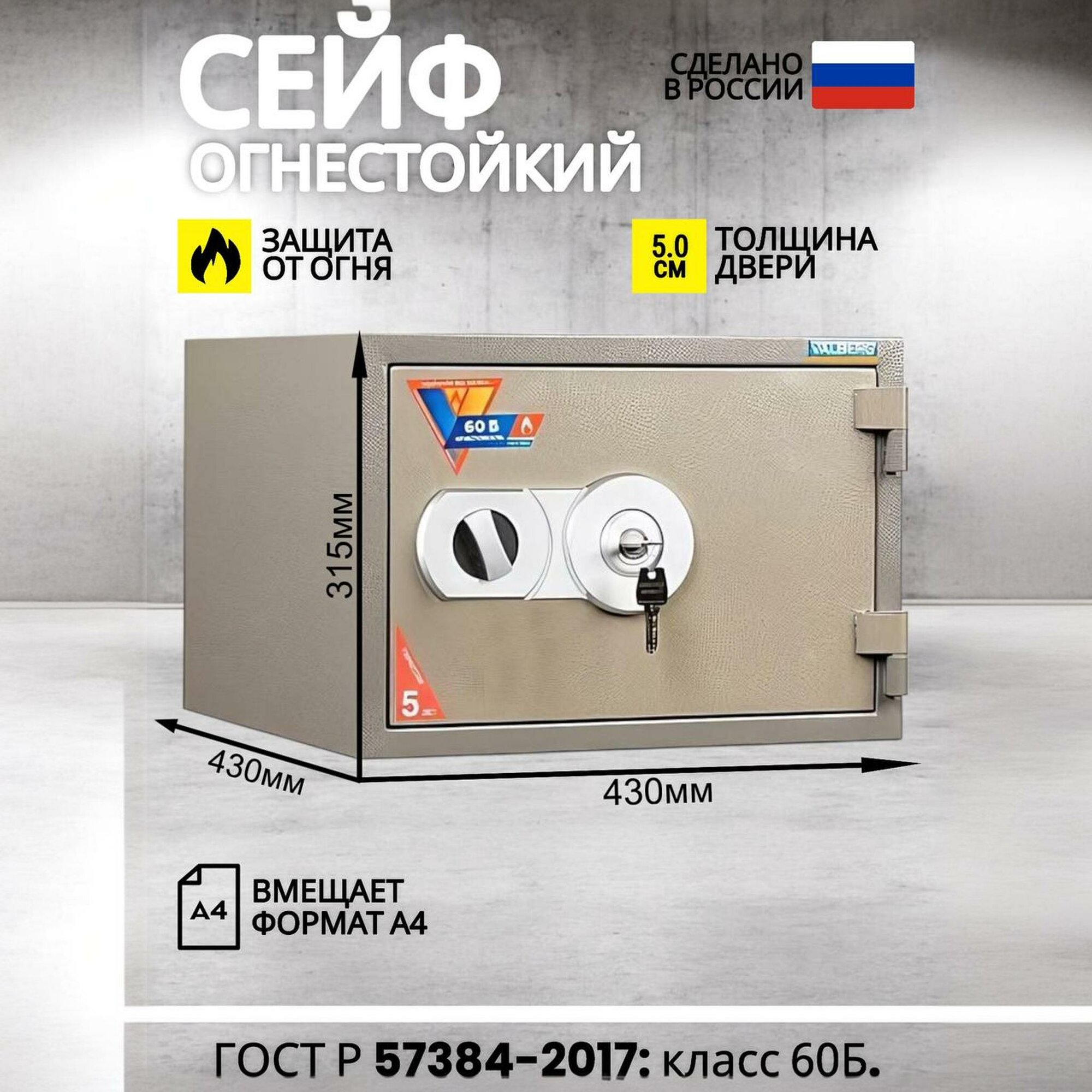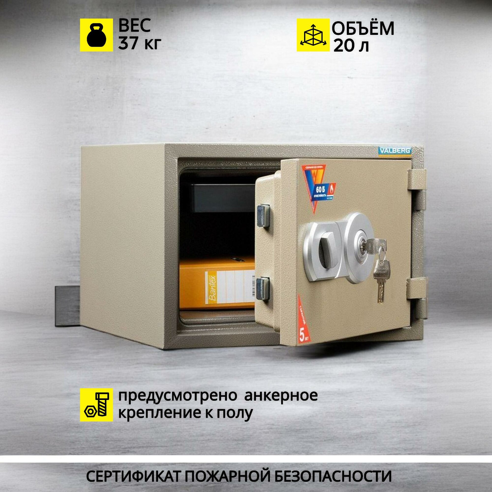 Сейф огнестойкий для хранения VALBERG FRS-32 KL, ключевой, ГОСТ: огнестойкость 60Б, 315x430x430ММ, формат А4 и Корона интересное: