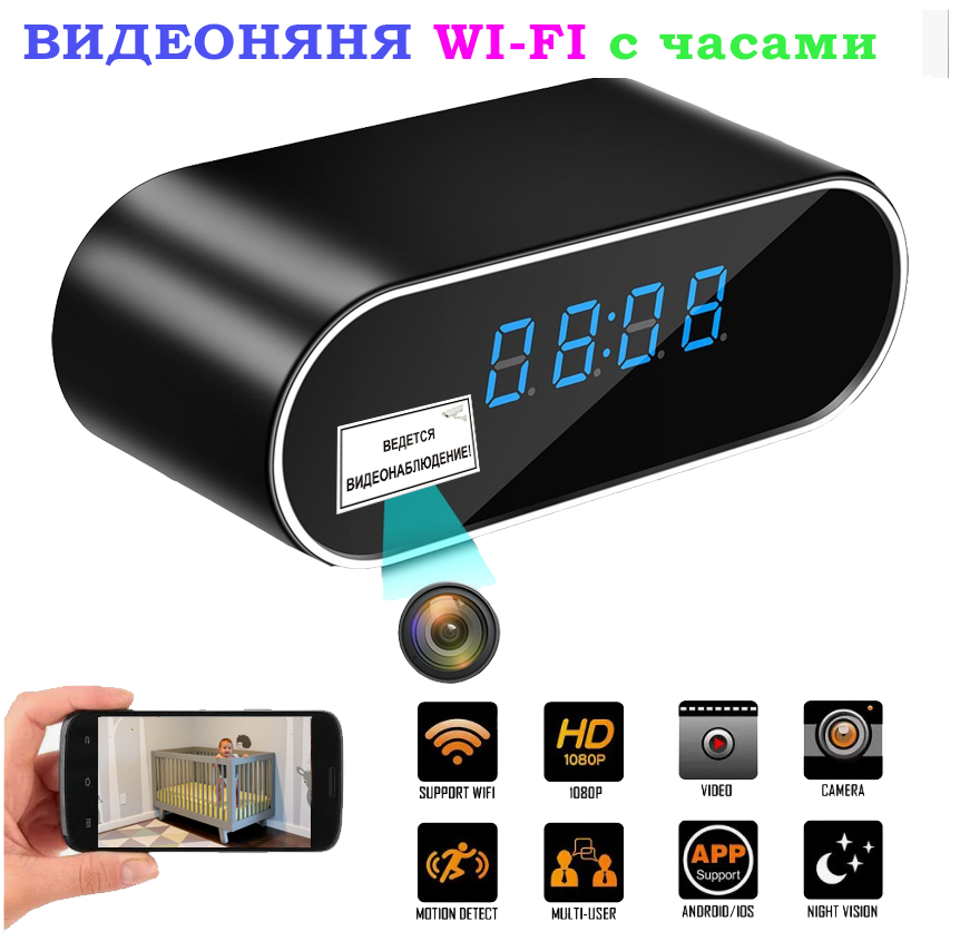 Часы Видеоняня с IP-камерой, будильником, 5-мп и поддержкой Wi-Fi