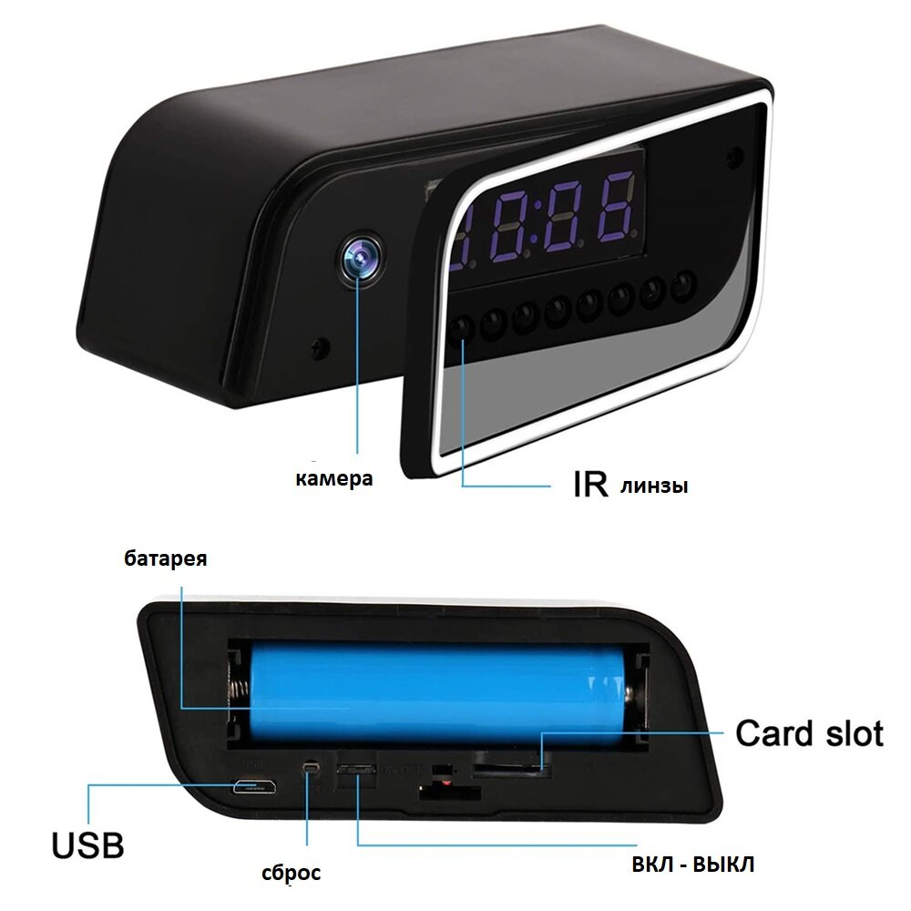 Часы Видеоняня с IP-камерой, будильником, 5-мп и поддержкой Wi-Fi