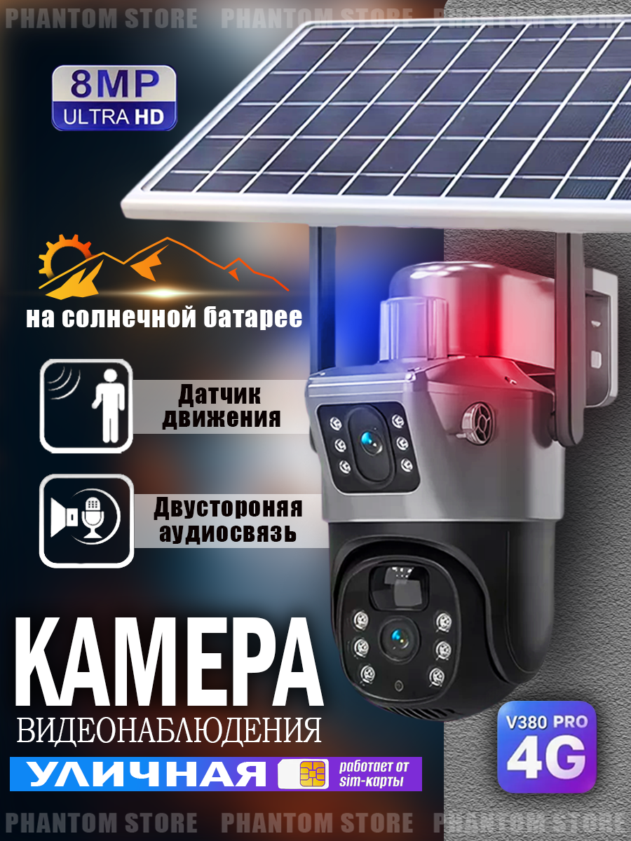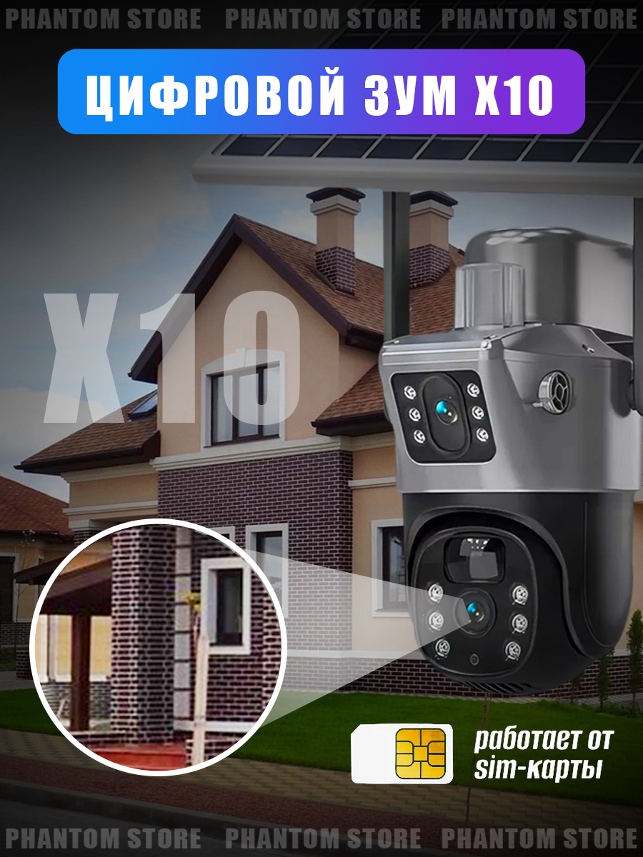 Камера видеонаблюдения двойная уличная 4G LTE / Х10 Zoom на солнечном батарее интересное: