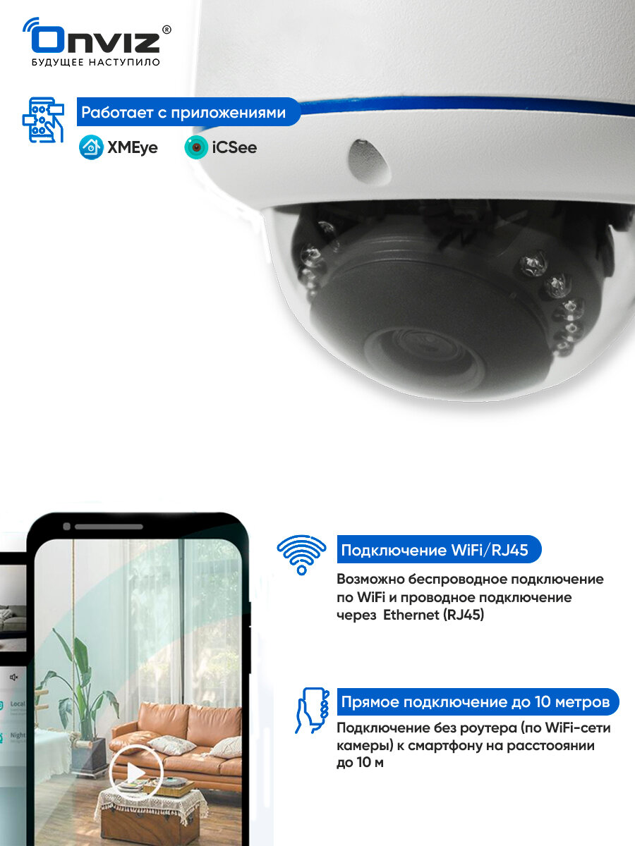 Купольная IP камера видеонаблюдения WiFi OnvizU75 с микрофоном, датчиком движения, с ИК подсветкой, ночная съемка интересное: