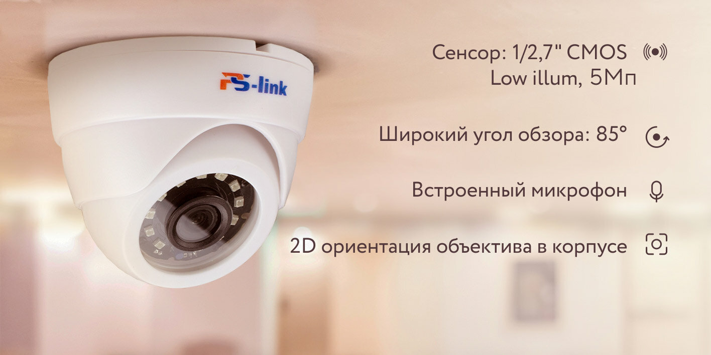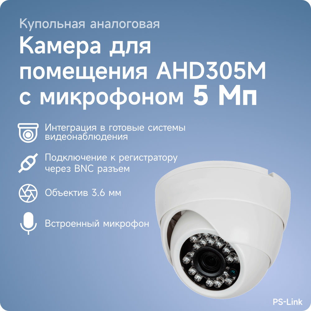 Купольная камера видеонаблюдения AHD 5Мп 1944P PS-link AHD305M с микрофоном интересное: