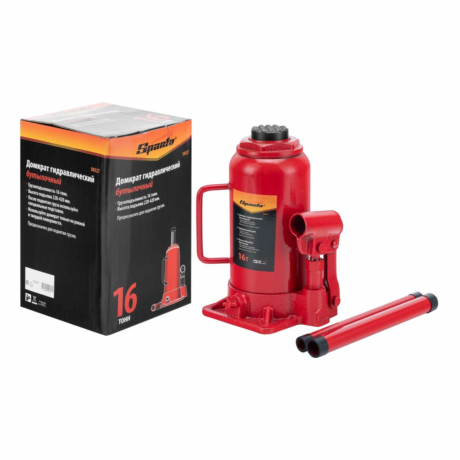 Домкрат гидравлический бутылочный, 16 т, h подъема 220-420 мм Sparta ( 50327 )