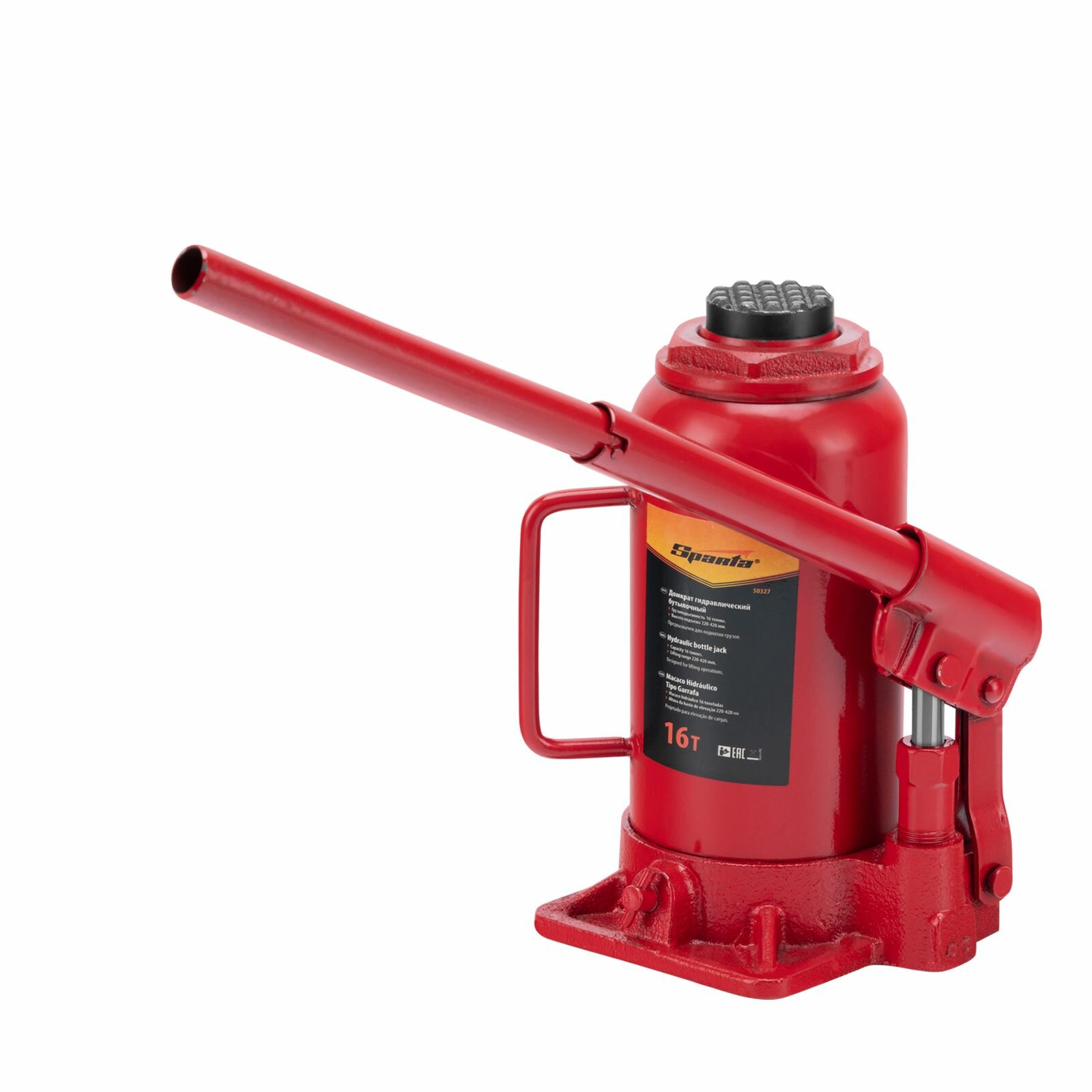 Домкрат гидравлический бутылочный, 16 т, h подъема 220-420 мм// Sparta 50327 .