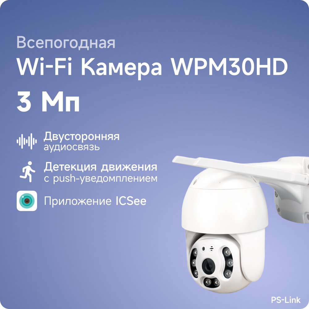 Ниже Вы можете прочитать отзывы на Поворотная WIFI камера видеонаблюдения PS-link WPM30HD IP 3Мп 1288P с LED подсветкой, ознакомится с подробными характеристиками, посмотреть интересные обзоры и фотографии на Поворотная WIFI камера видеонаблюдения PS-link WPM30HD IP 3Мп 1288P с LED подсветкой.