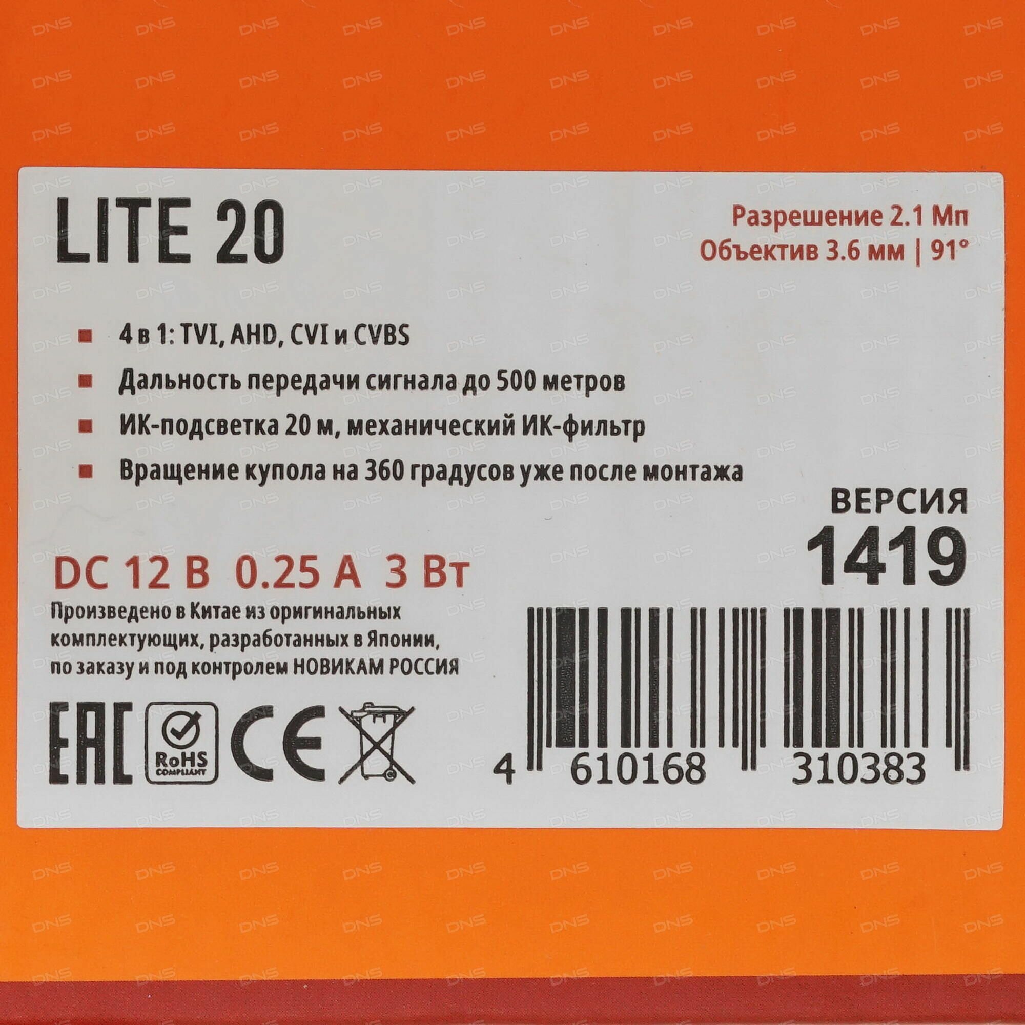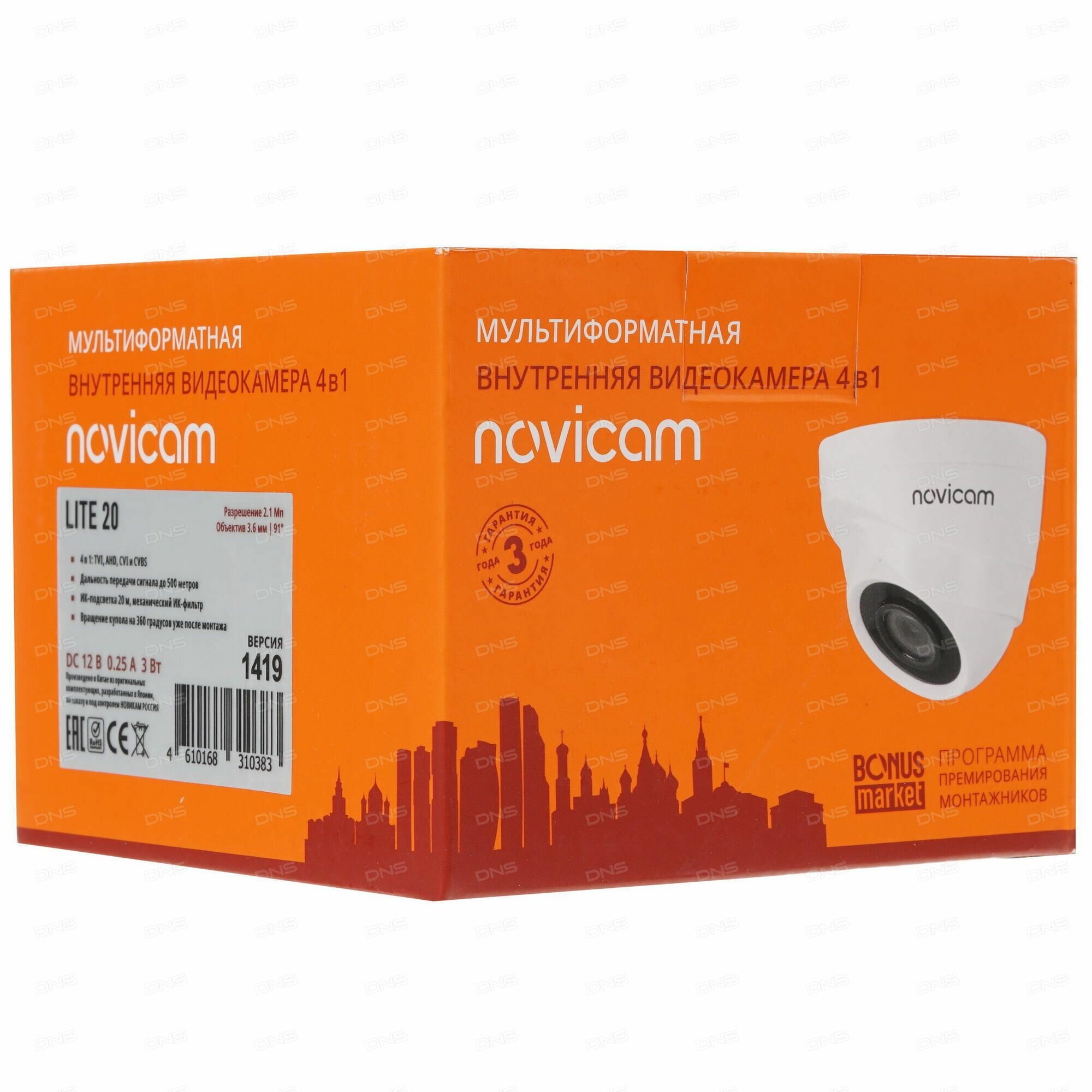 Камера видеонаблюдения Novicam LITE 20 v.1419, формат TVI/AHD/CVI/CVBS, 2 Мп, 3.6 мм, ИК подсветка 20 м интересное: