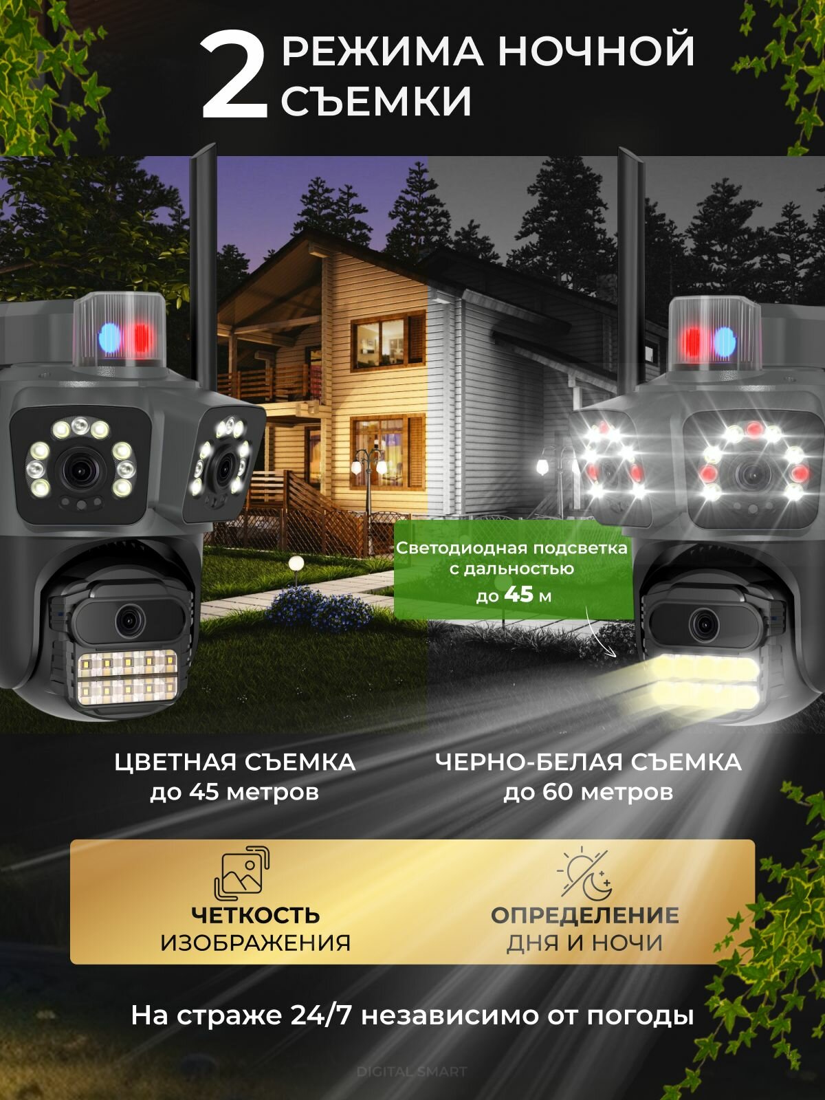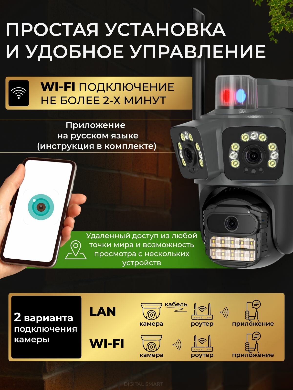 Камера видеонаблюдения wifi двойная уличная, IP видеокамера с сиреной и подсветкой 8 МП