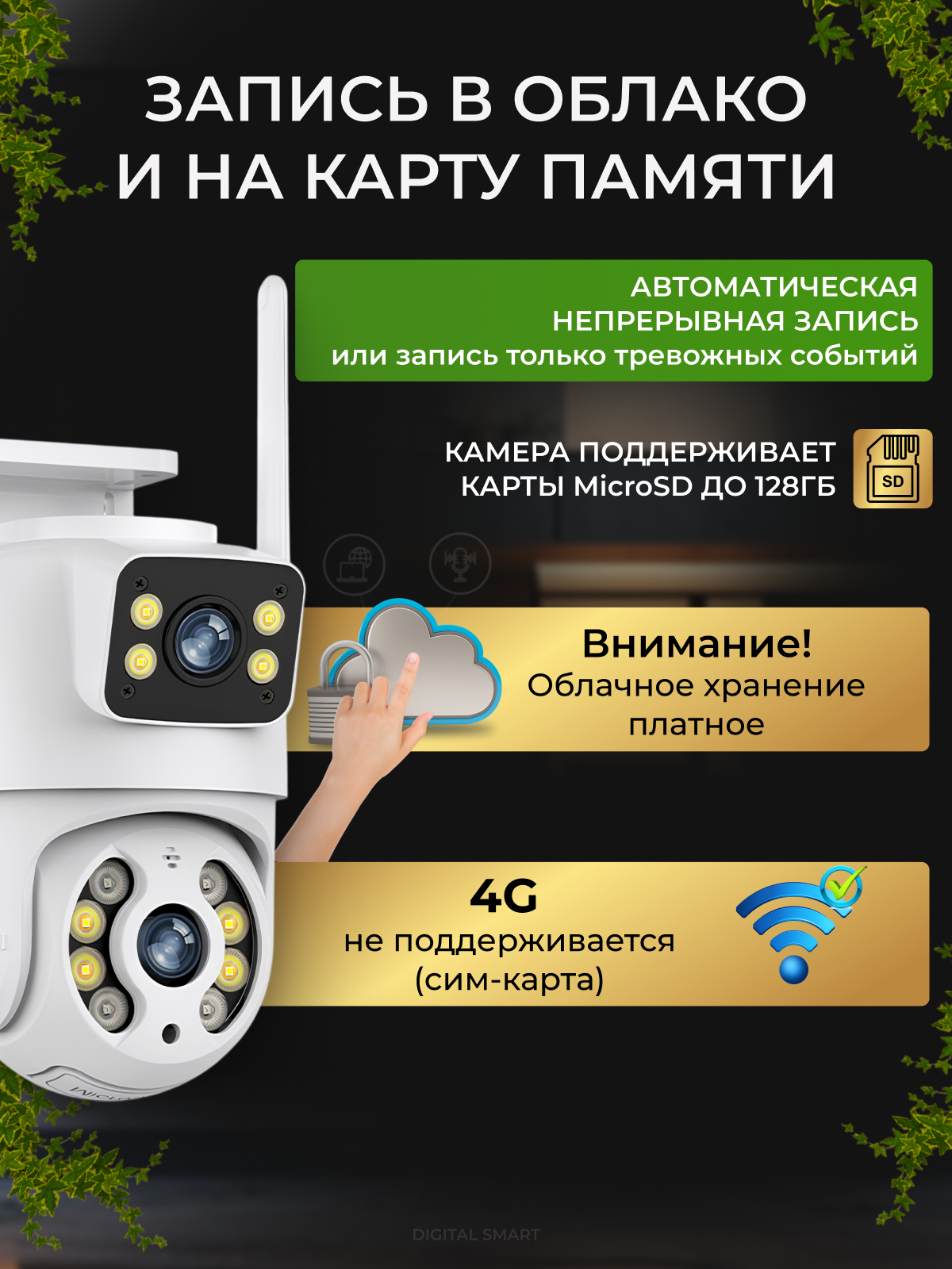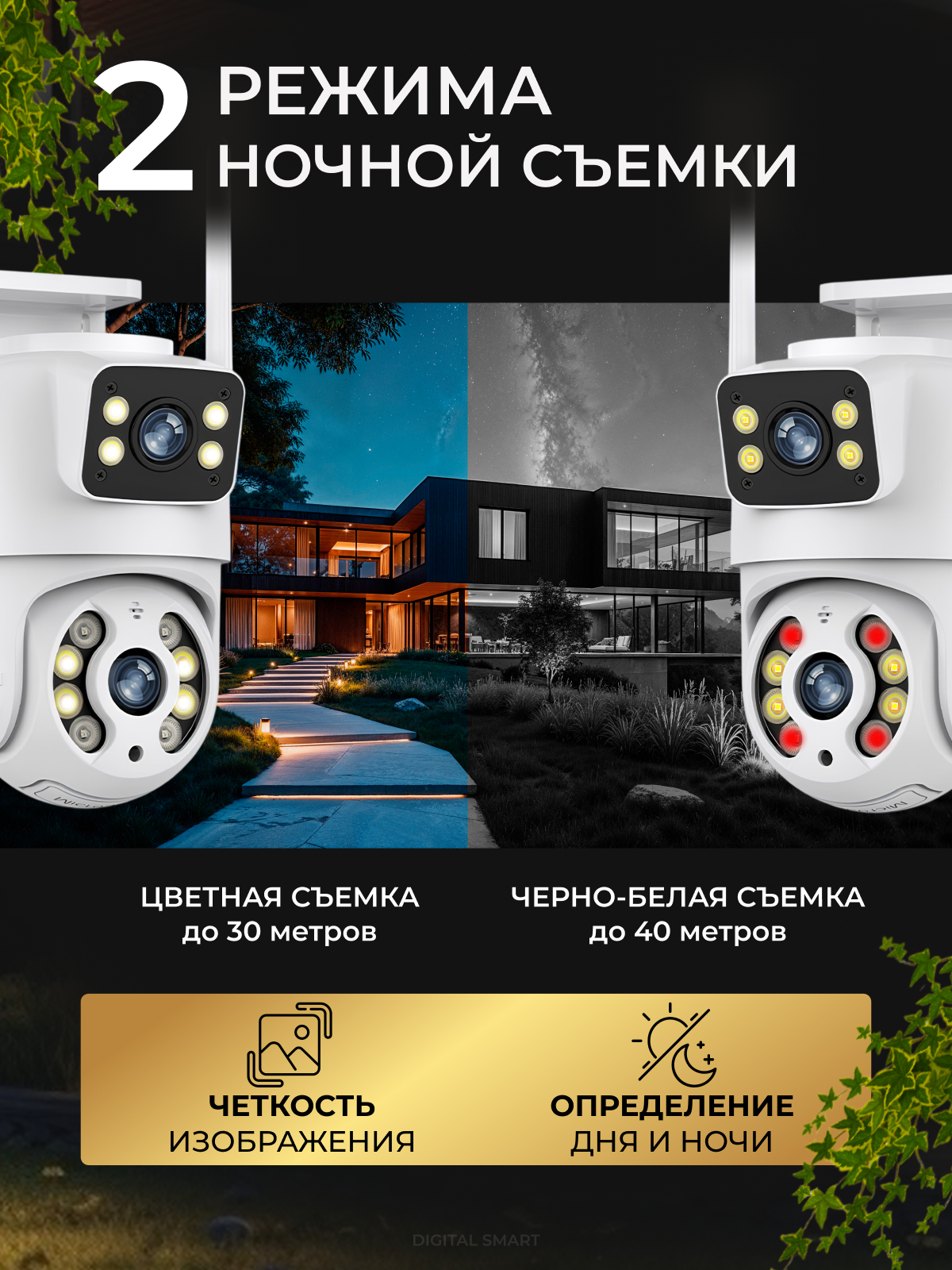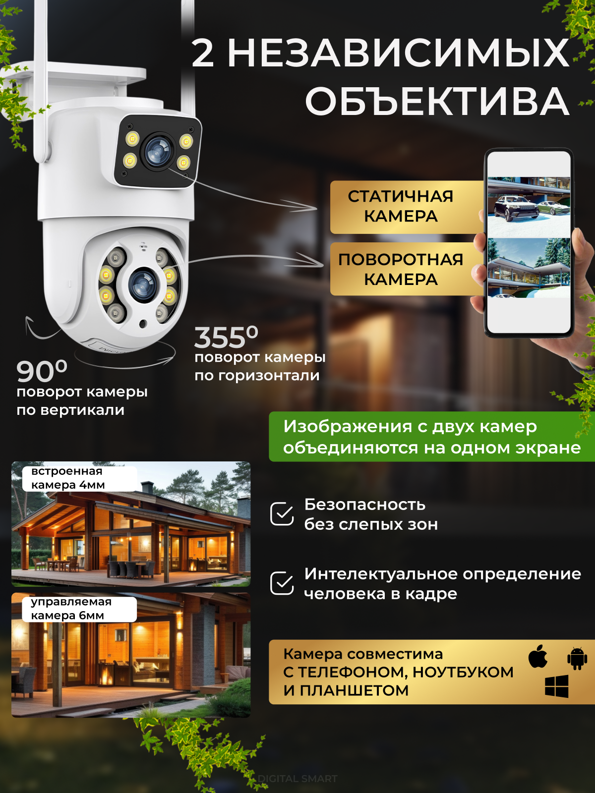Камера видеонаблюдения wifi двойная уличная, IP видеокамера с сиреной и подсветкой 8 МП