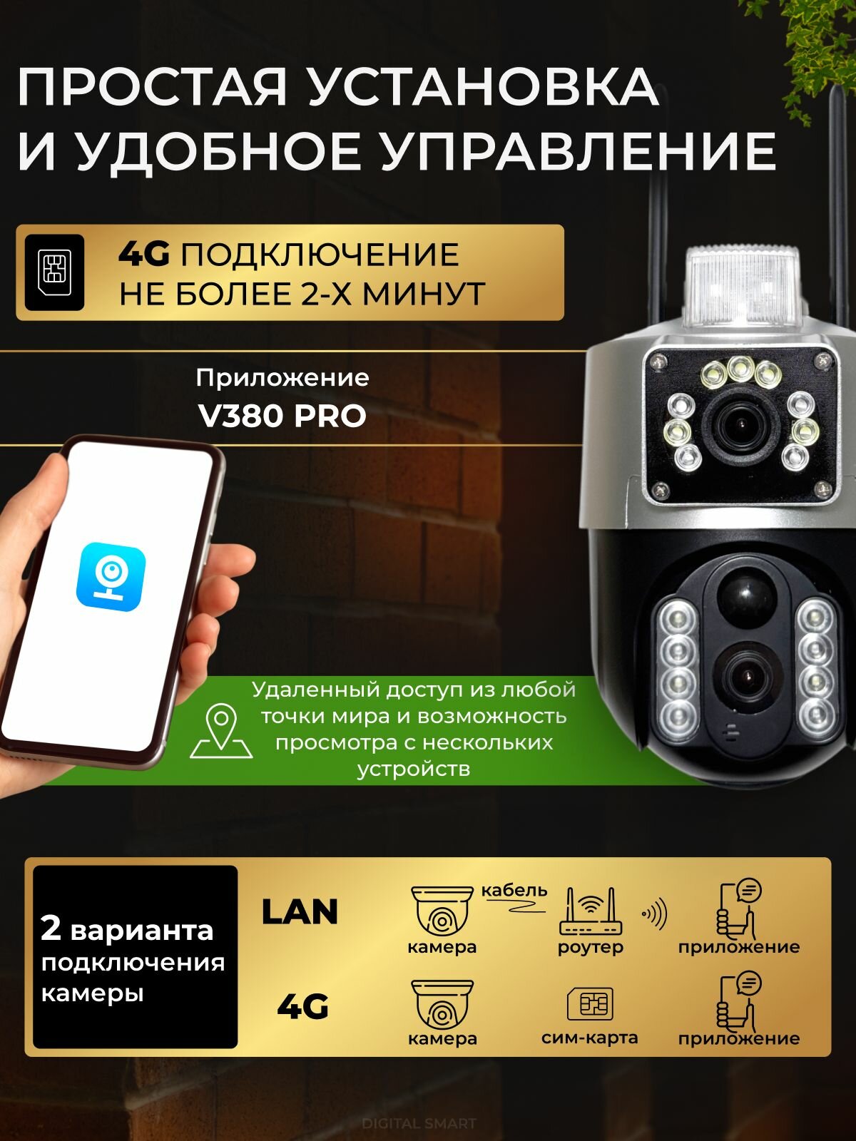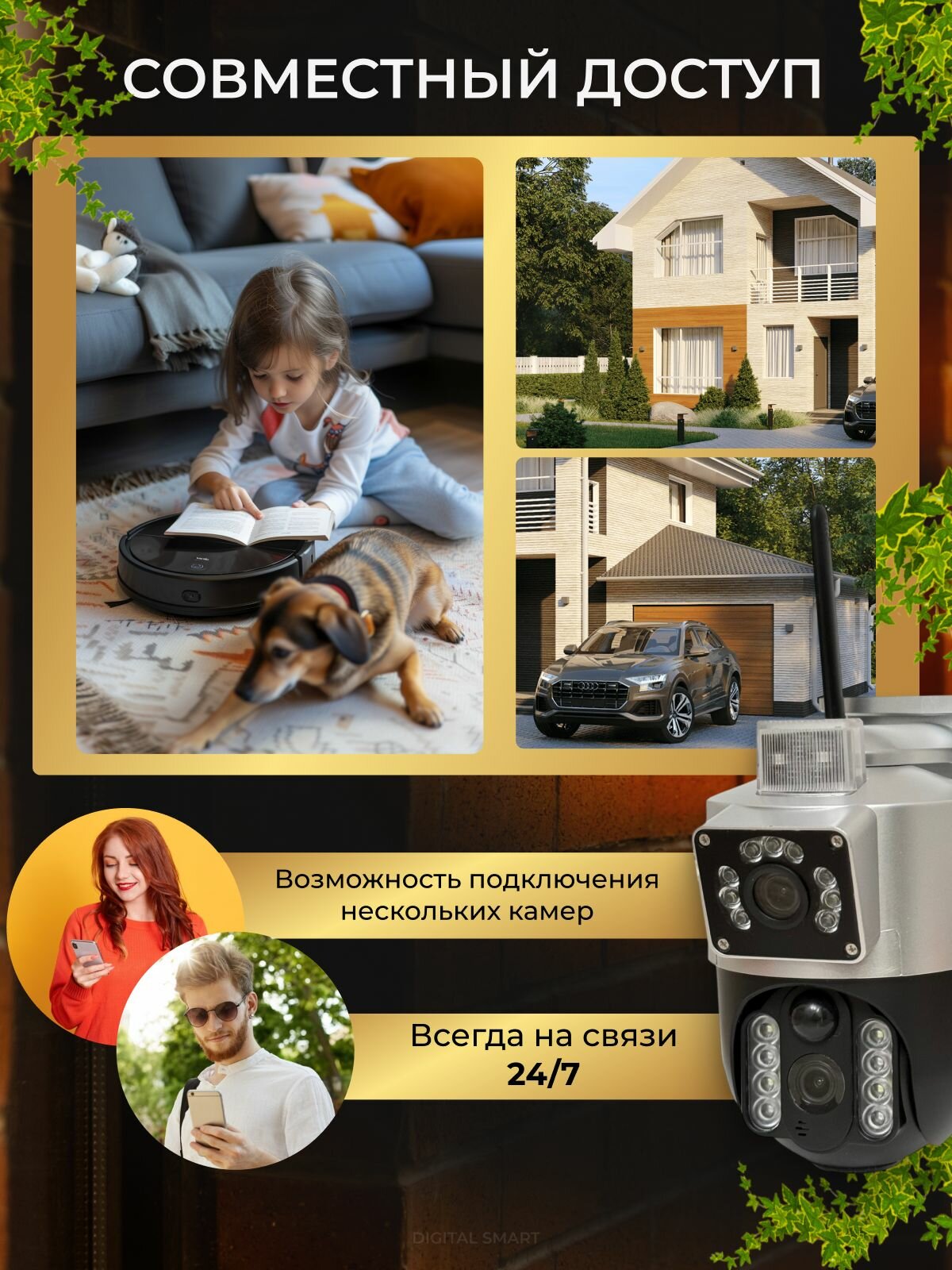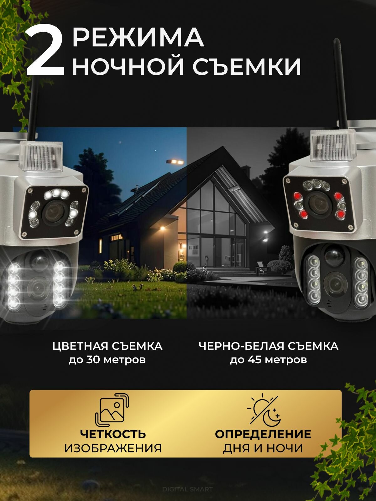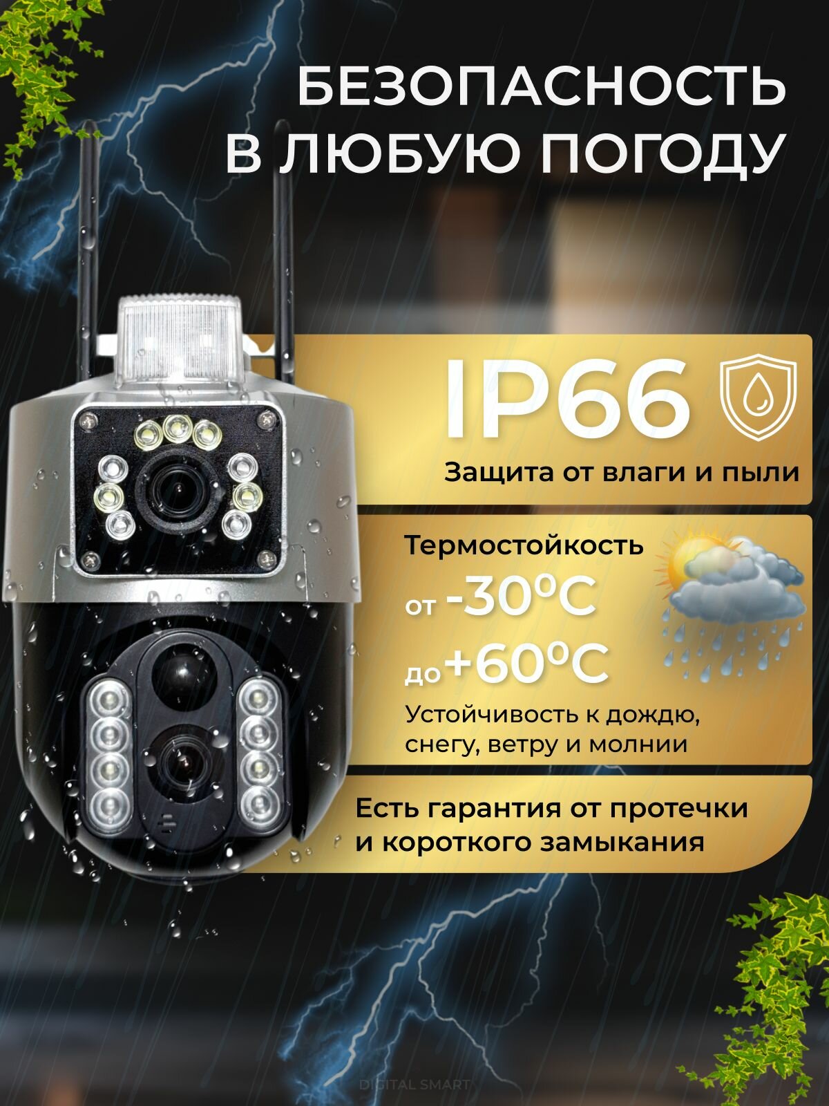 Камера видеонаблюдения wifi двойная уличная, IP видеокамера с сиреной и подсветкой 8 МП
