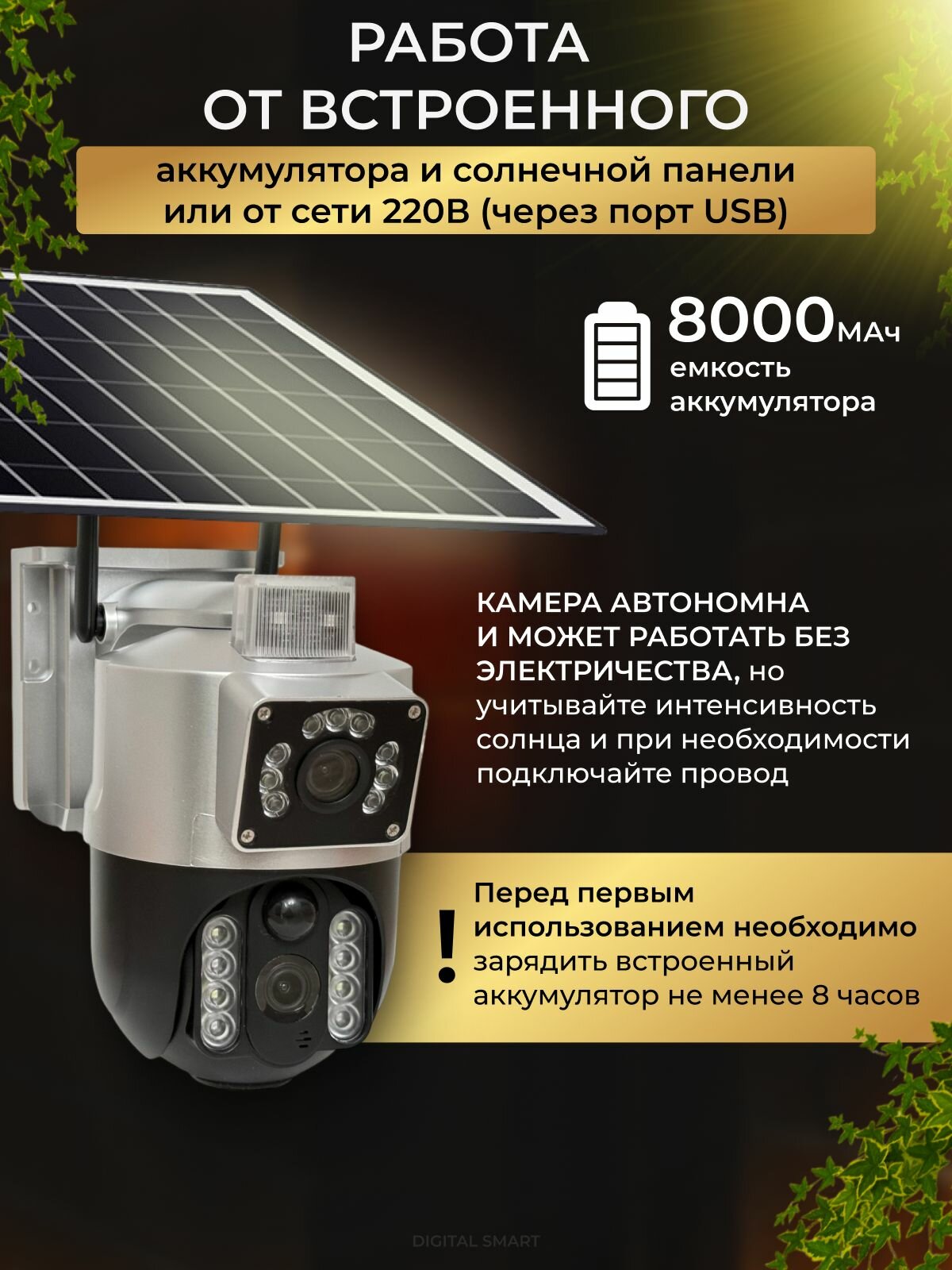 Камера видеонаблюдения wifi двойная уличная, видеокамера с сиреной и подсветкой 8 МП