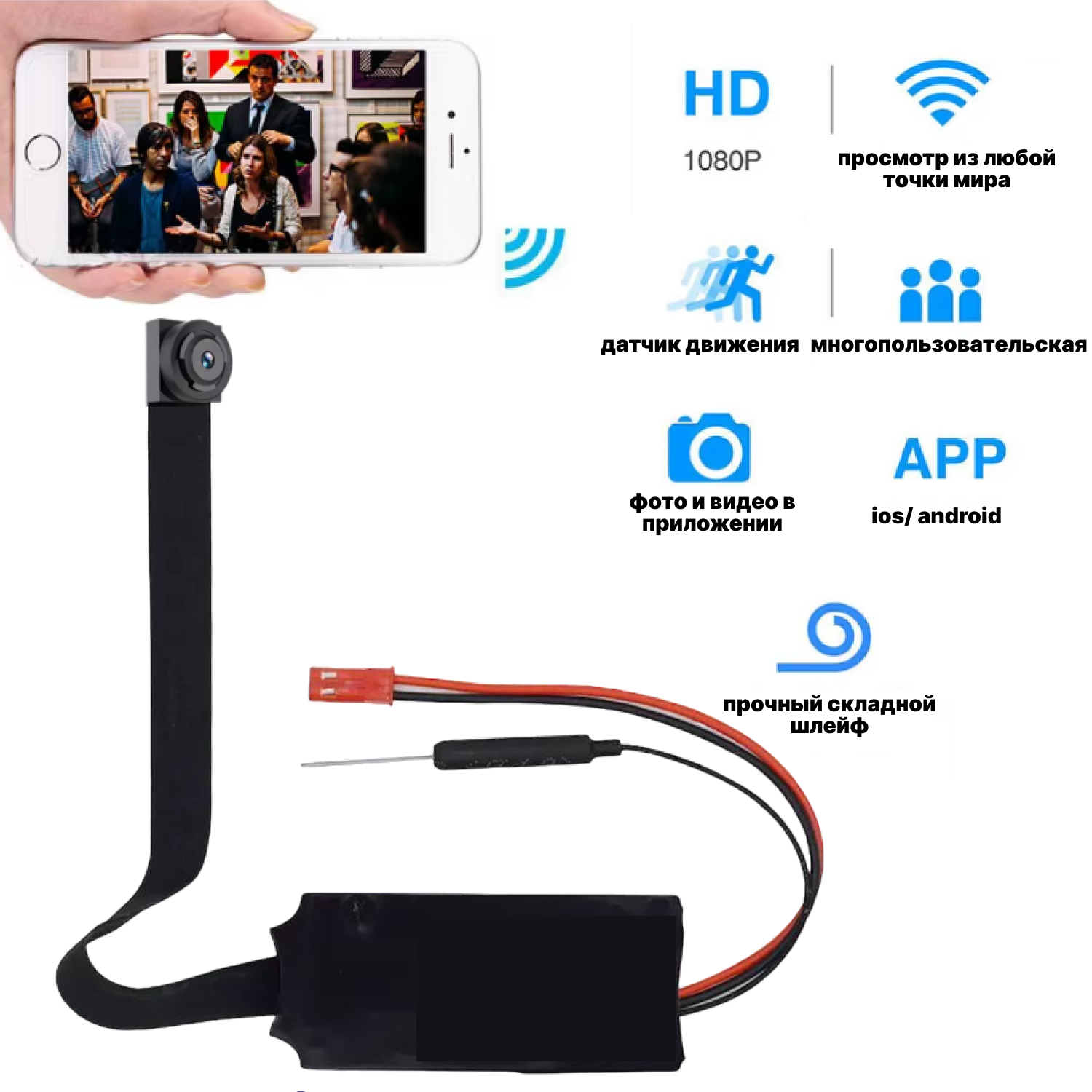 Камера видеонаблюдения с мобильным приложением "LookCam" на русском языке, угол обзора 90 °, Wi-Fi, 1920 x 1080 интересное: