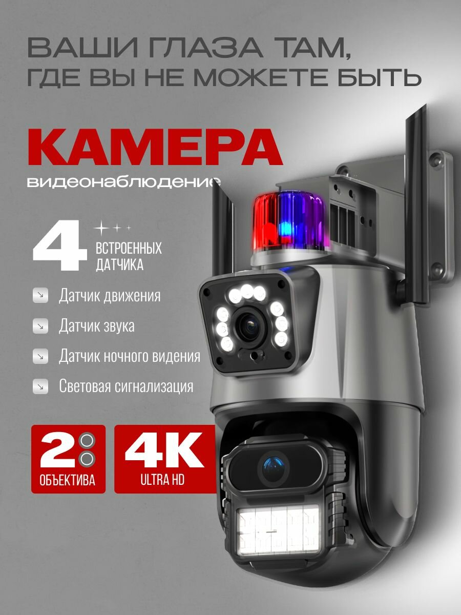 Камера видеонаблюдения wifi уличная IP камера поворотная с датчиком движения и двумя объективами, Серый интересное: