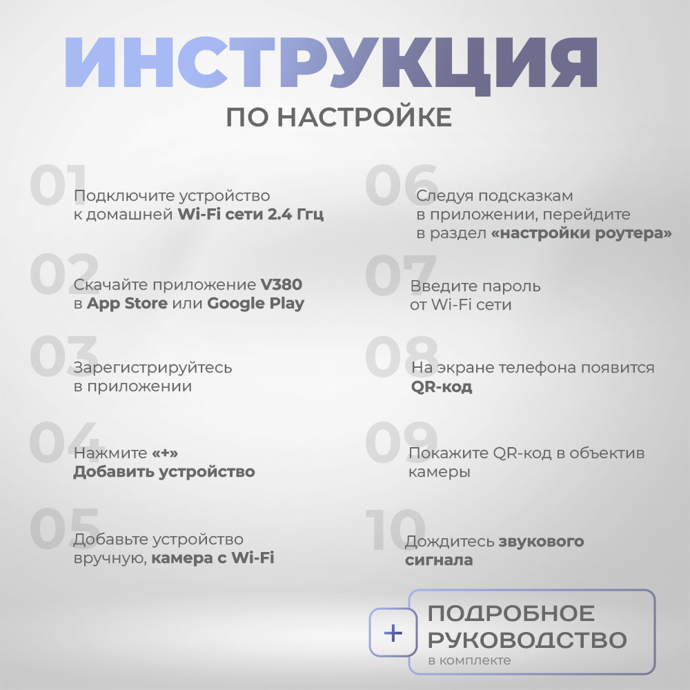 IP-камера видеонаблюдения Wi-Fi для дома с обзором 360 градусов белая