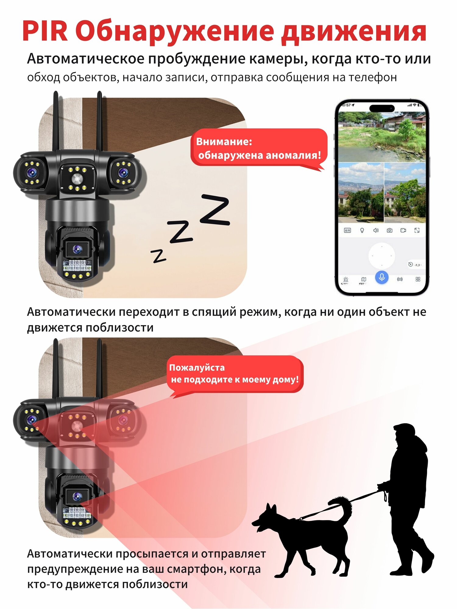 6MP уличная HD-камера видеонаблюдения с тройным объективом, ночным видением, 4G и удалённым управлением со смартфона интересное: