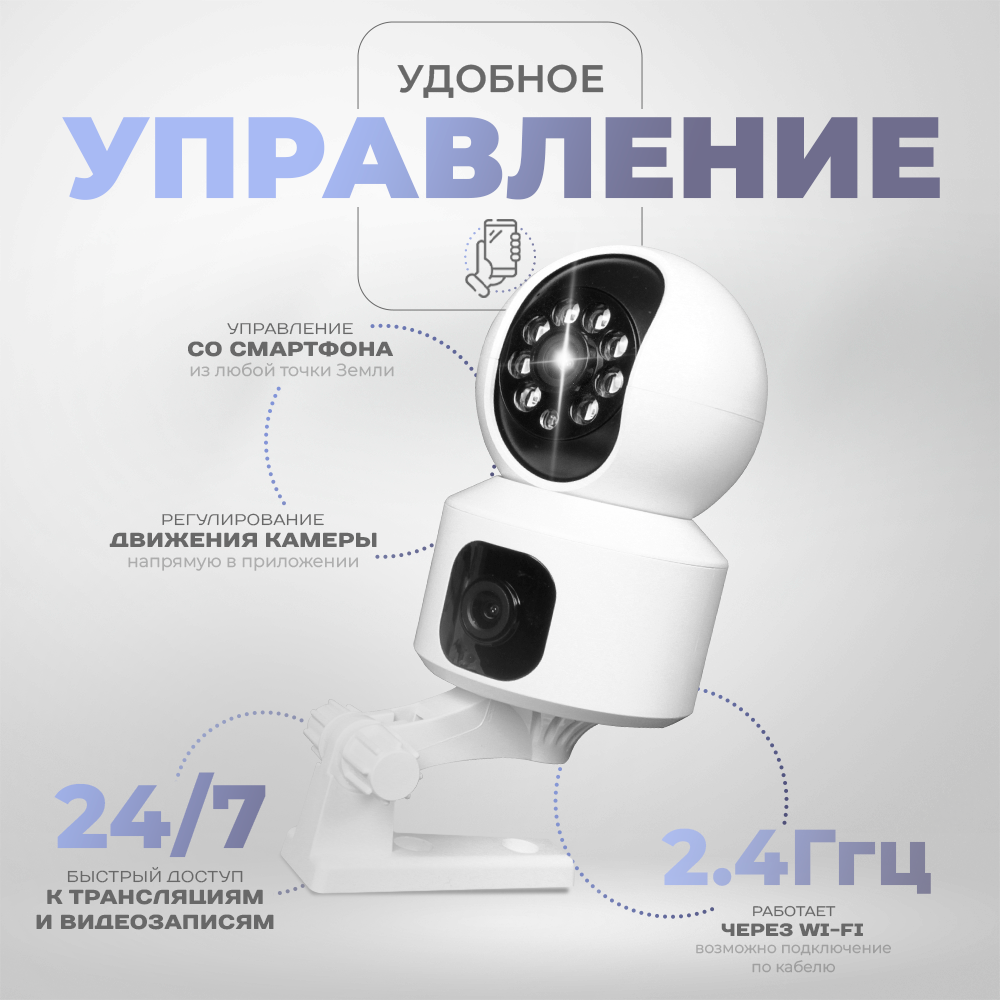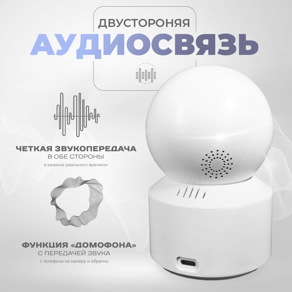 IP-камера видеонаблюдения Wi-Fi для дома с обзором 360 градусов белая