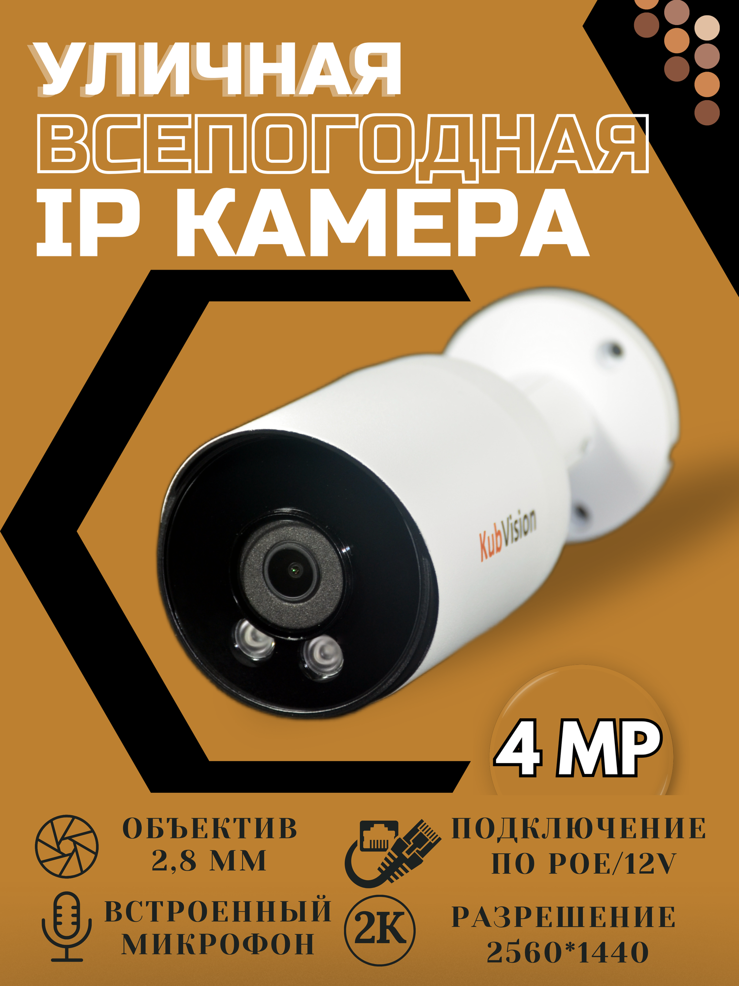 Камера видеонаблюдения KubVision купольная с PoE, IP-камера с ночным видением, с микрофоном, 4 Мп