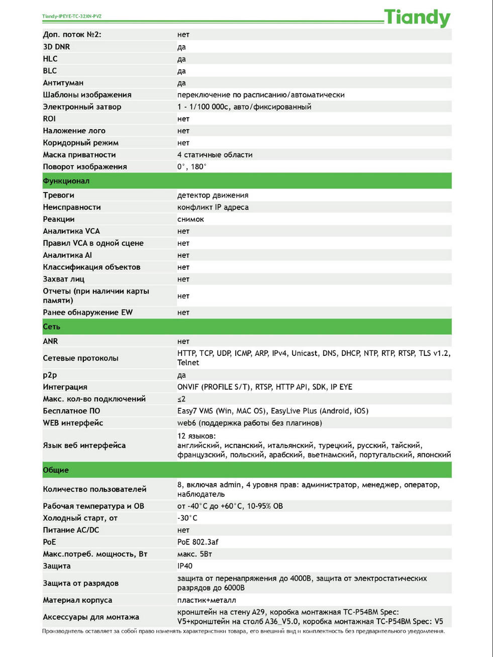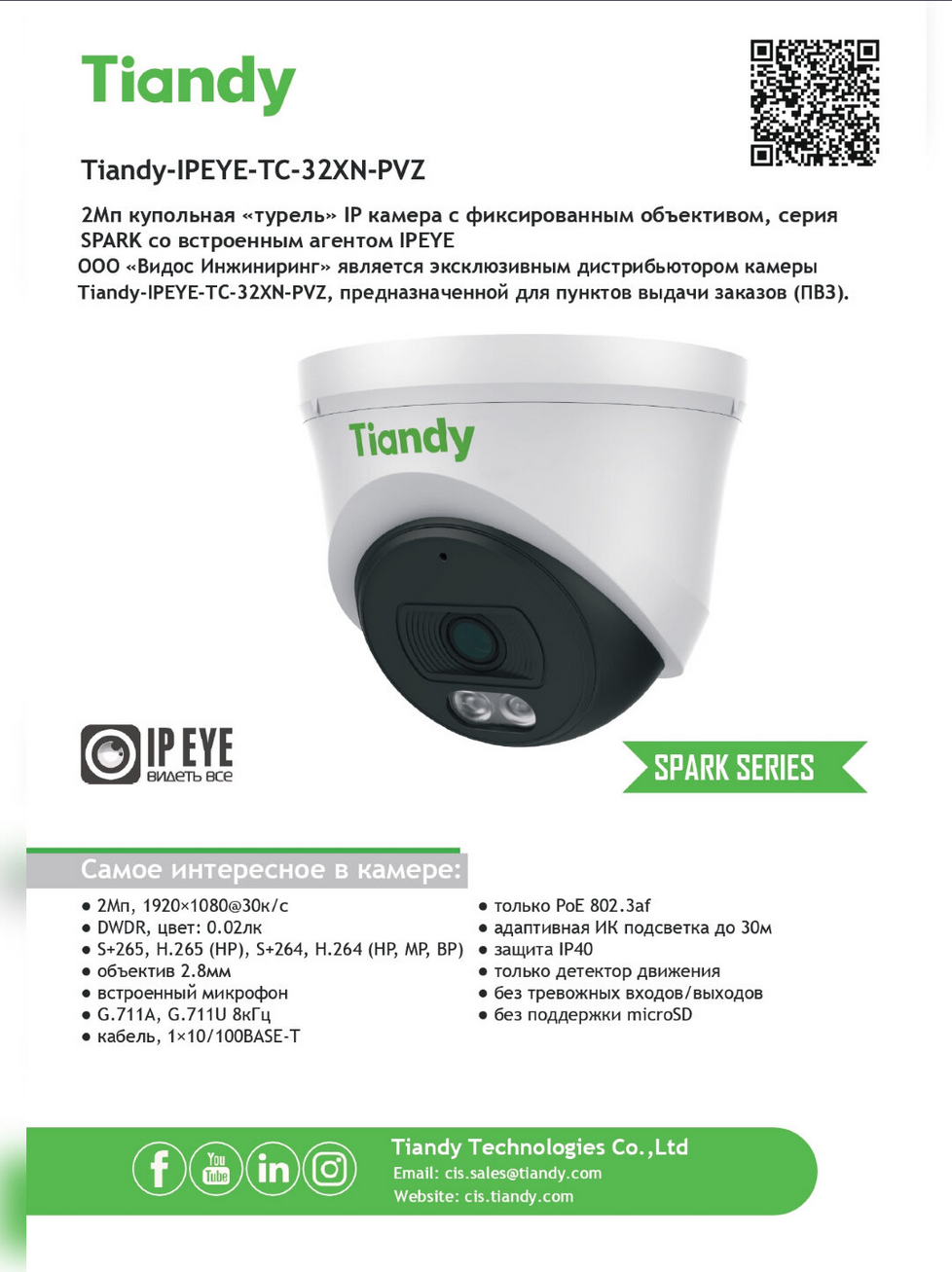 IP Камера видеонаблюдения 2мп для ПВЗ Tiandy IPEYE-TC-32XN-PVZ с микрофоном и облаком IPEYE интересное: