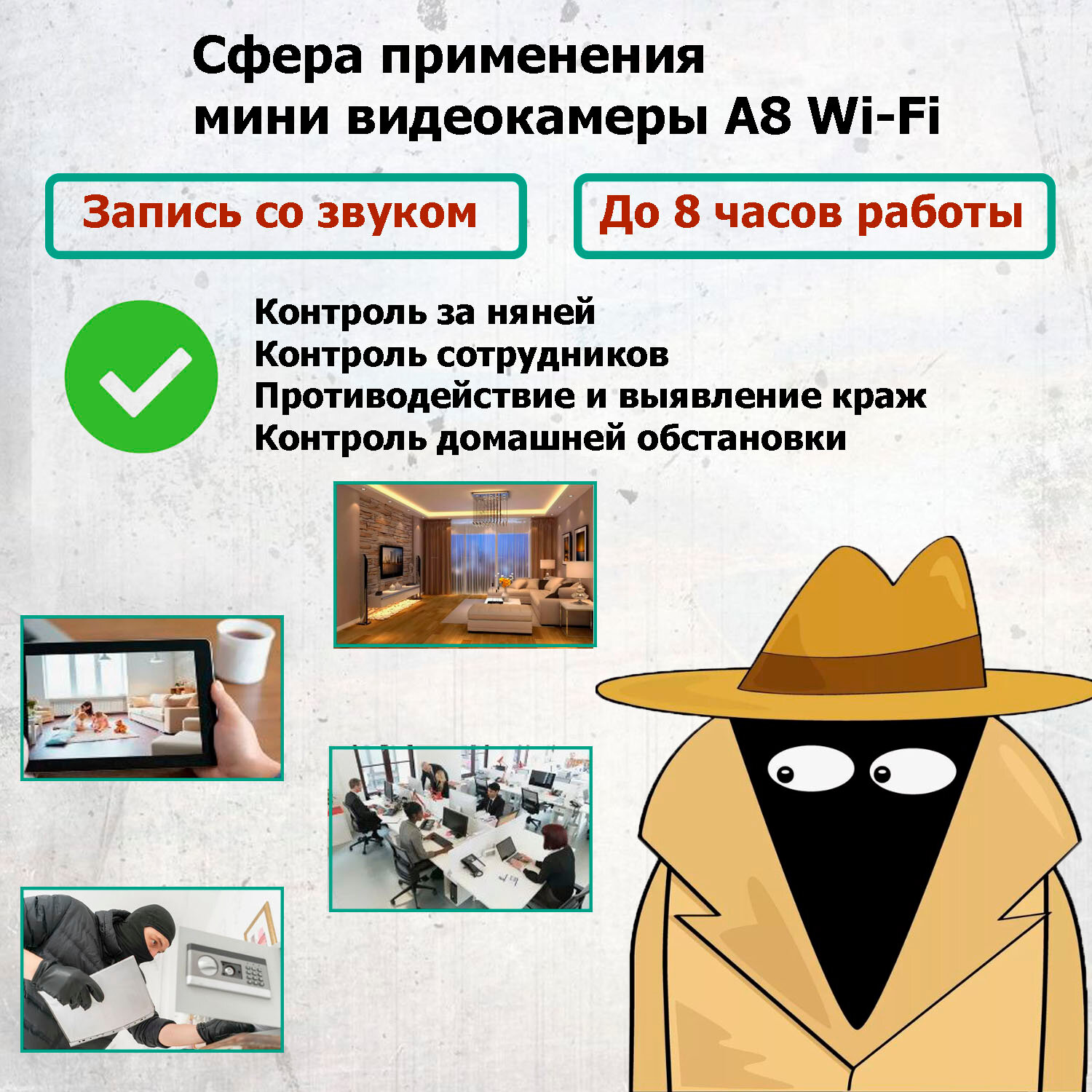 Ниже Вы можете прочитать отзывы на Беспроводная автономная мини видеокамера A8 с Wi-Fi (FulHD, поворотный объектив, удалённый просмотр, запись звука), ознакомится с подробными характеристиками, посмотреть интересные обзоры и фотографии на Беспроводная автономная мини видеокамера A8 с Wi-Fi (FulHD, поворотный объектив, удалённый просмотр, запись звука).